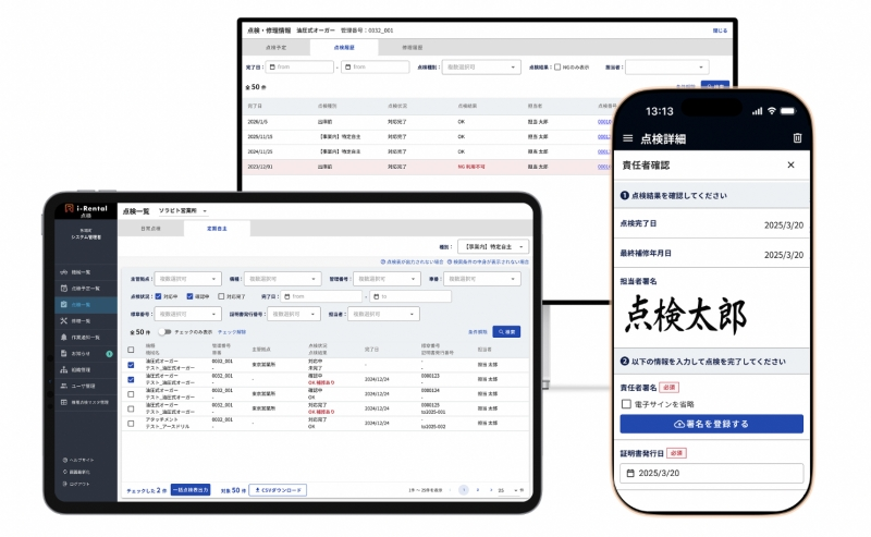 SORABITO、「i-Rental 点検」をアップデート。建機の「特定自主検査」デジタル化に対応
