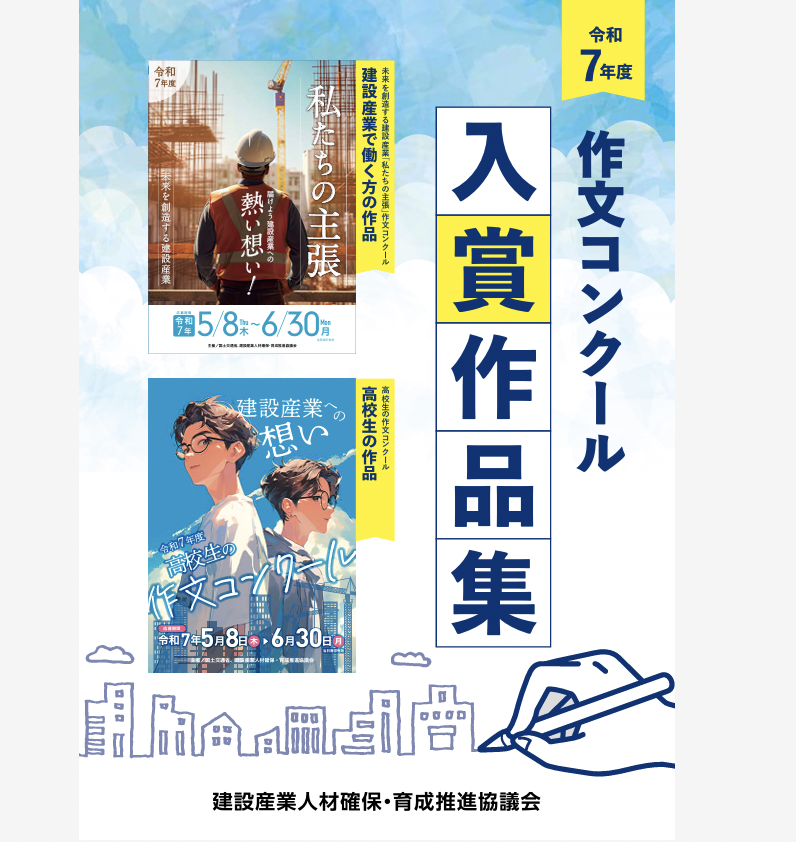国土交通省と建設産業人材確保・育成推進協議会(事務局:建設業振興基金)では毎年度、建設産業の役割や重要性について理解と関心を高めるため、建設産業に従事する社会人と建築・土木学科等の高校生を対象に作文コンクールを実施している。