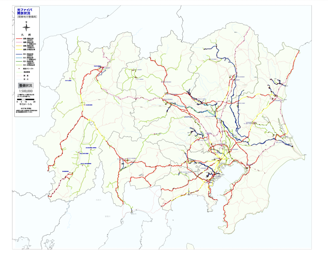 国土交通省は、河川・道路管理用光ファイバについて、施設管理に支障のない範囲内で電気通信事業者等に開放している。
