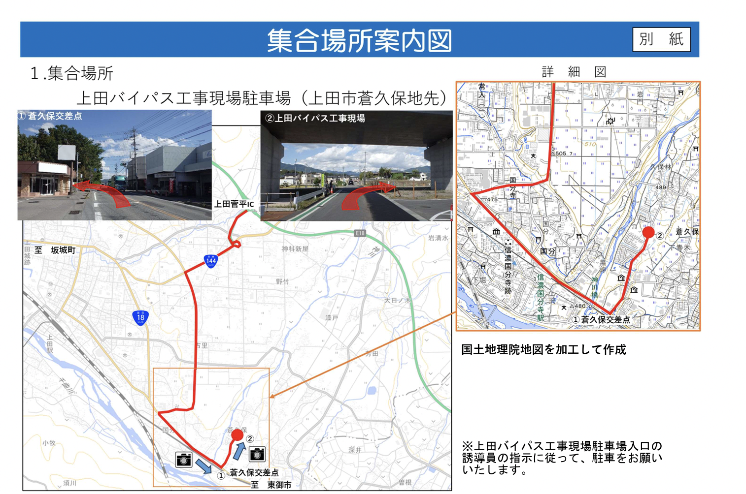 見学会は上田市立神川小学校の児童を招き、長野県上田市蒼久保から国分地先で実施される。開催時間は9時から11時50分までで、雨天時は決行、荒天時は延期となる。