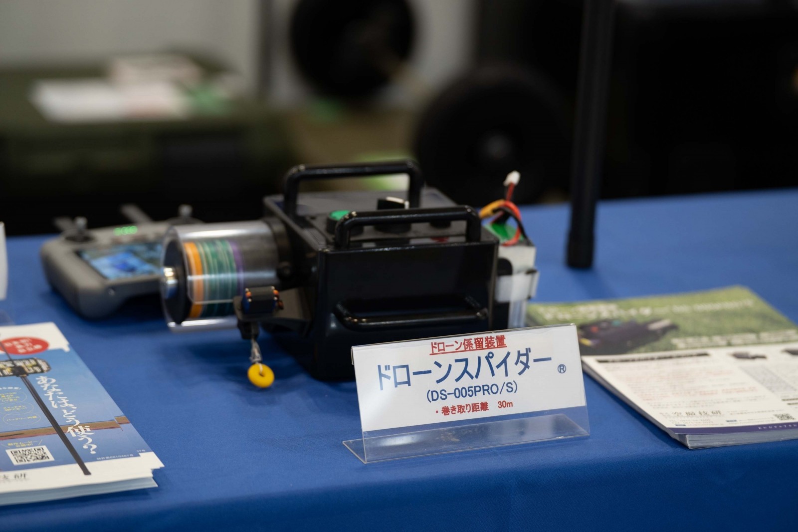 空撮技研は、ドローンの安全運用を支援する係留装置「ドローンスパイダー® DS-006PRO」を展示し、ドローン暴走事故の未然防止を提案した。