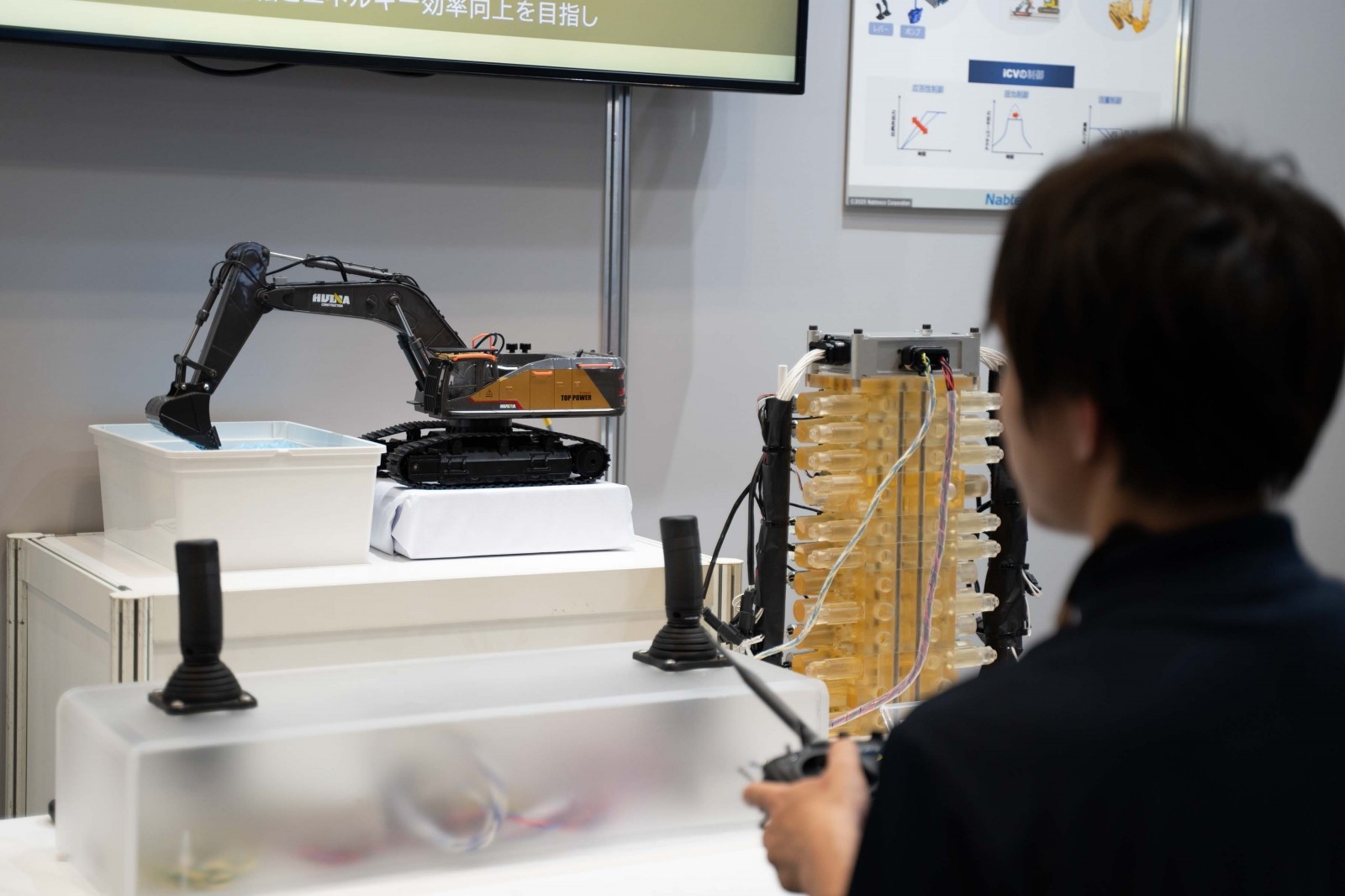 ナブテスコは、建設機械の電子制御化と自動化を支える3つの油圧制御技術を展示した。