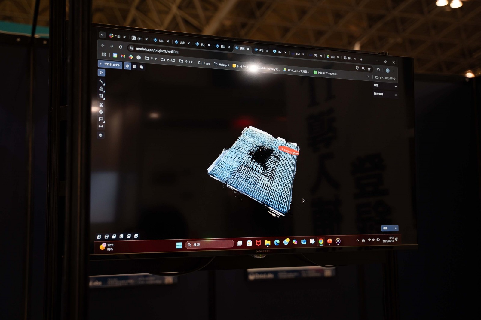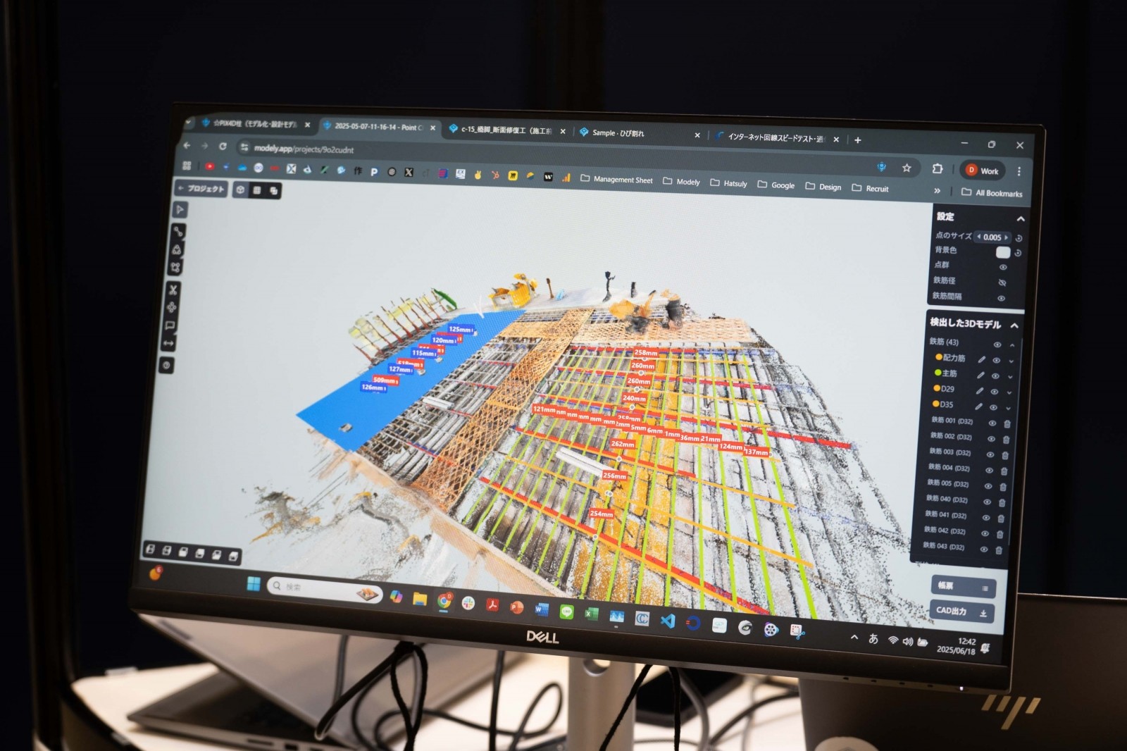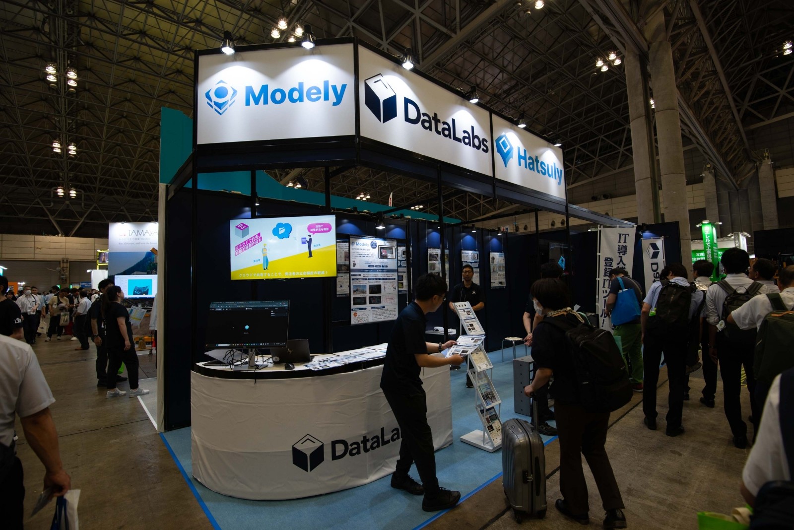 DataLabsは、建設現場のデジタル化を推進する2つの3Dソリューション「Modely」と「Hatsuly」を展示し、配筋検査とインフラ補修工事の効率化を提案した。