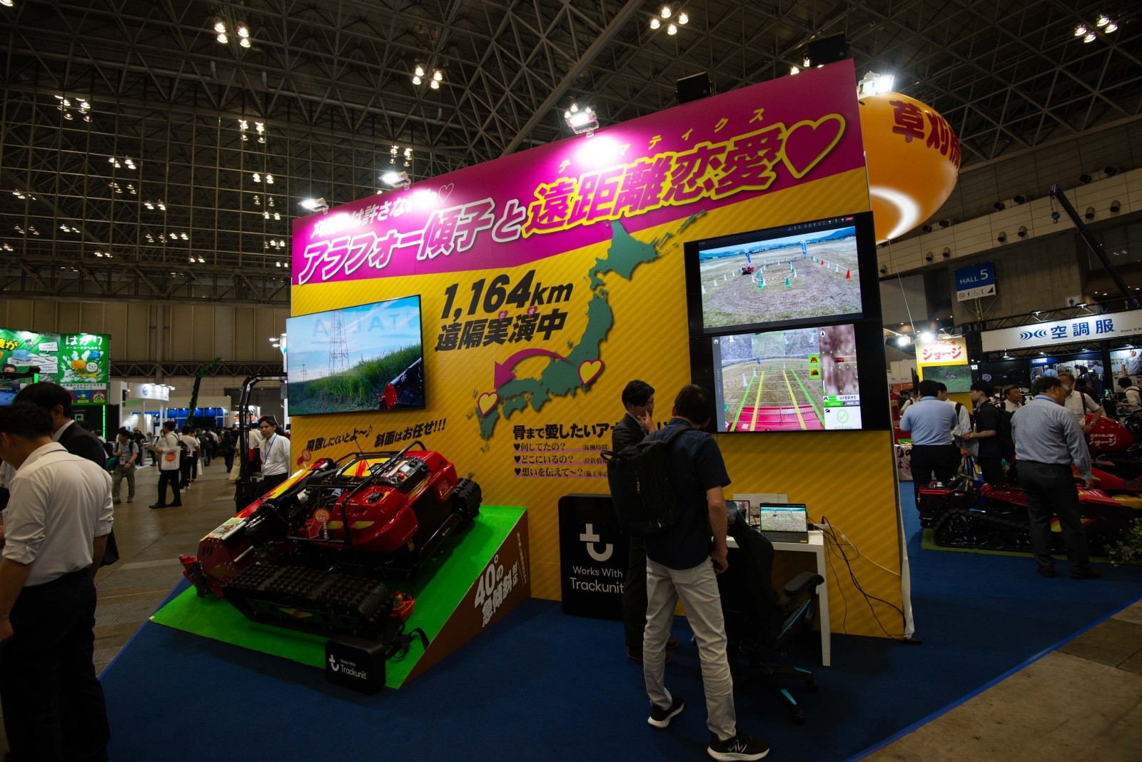 キャニコムは、インフラ整備に特化したラジコン式ハンマーナイフモア「アラフォー傾子"CG271HC"」を展示し、急傾斜地での安全な草刈作業を提案した。