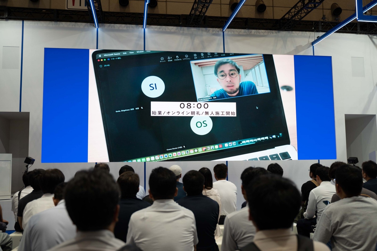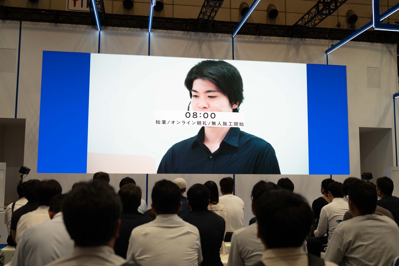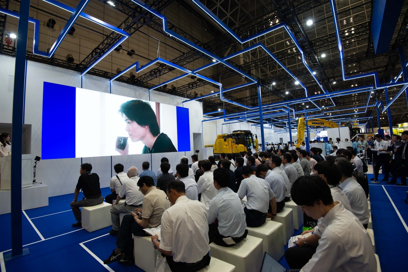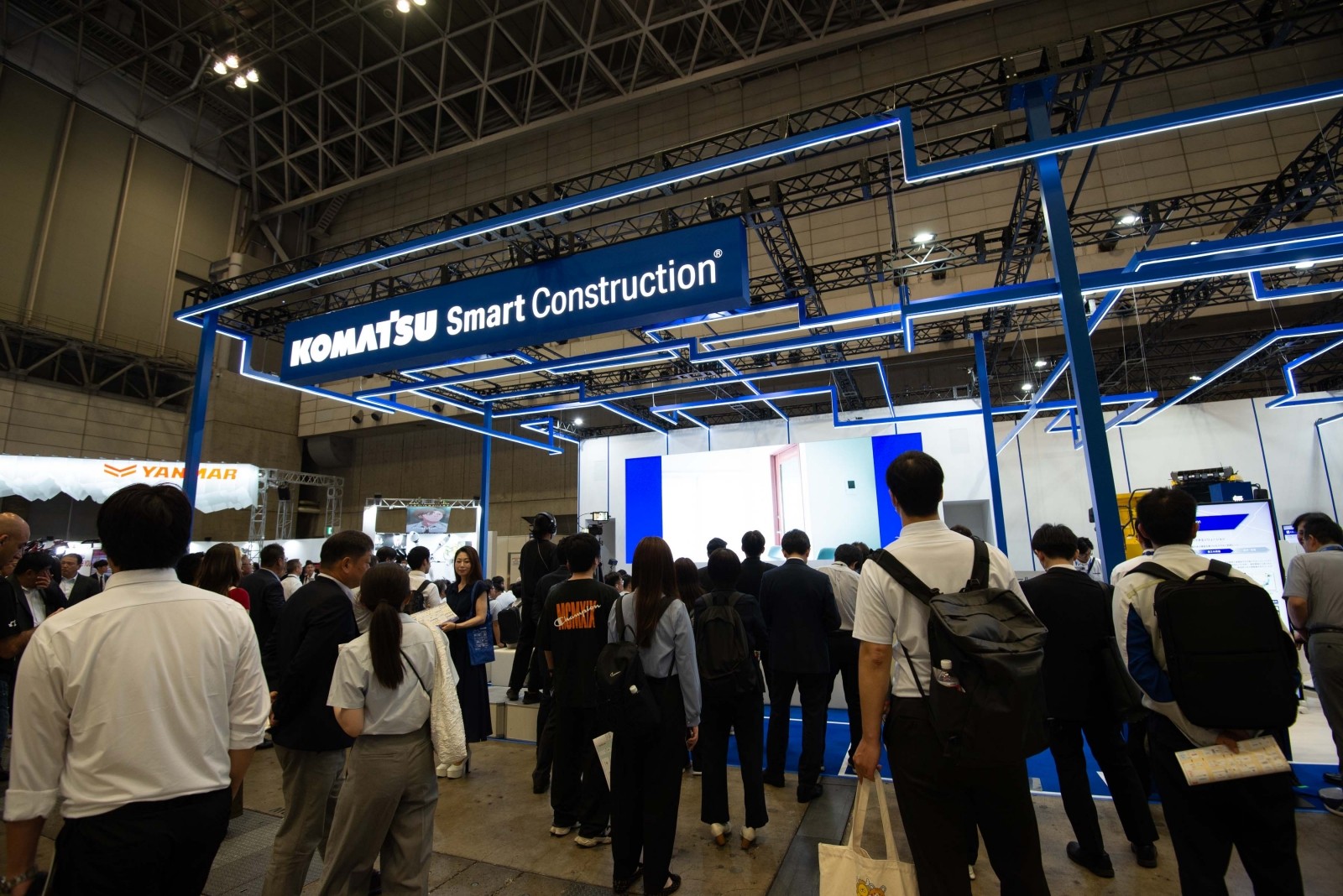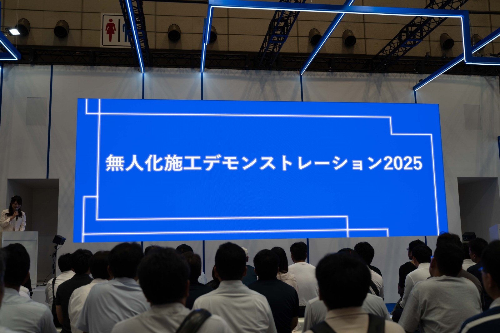 コマツは、屋内ブース メインステージでの「無人化施工デモンストレーション2025」を通じて、建設現場における省人化・無人化の実現可能性を具体的に提示した。