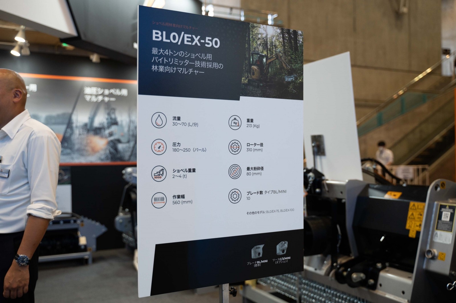 建機ワールドは、5年前から日本でのマルチャー普及を牽引してきたパイオニア企業として、林業用マルチャーと切り株処理、解体作業の革新的ソリューションを展示した。