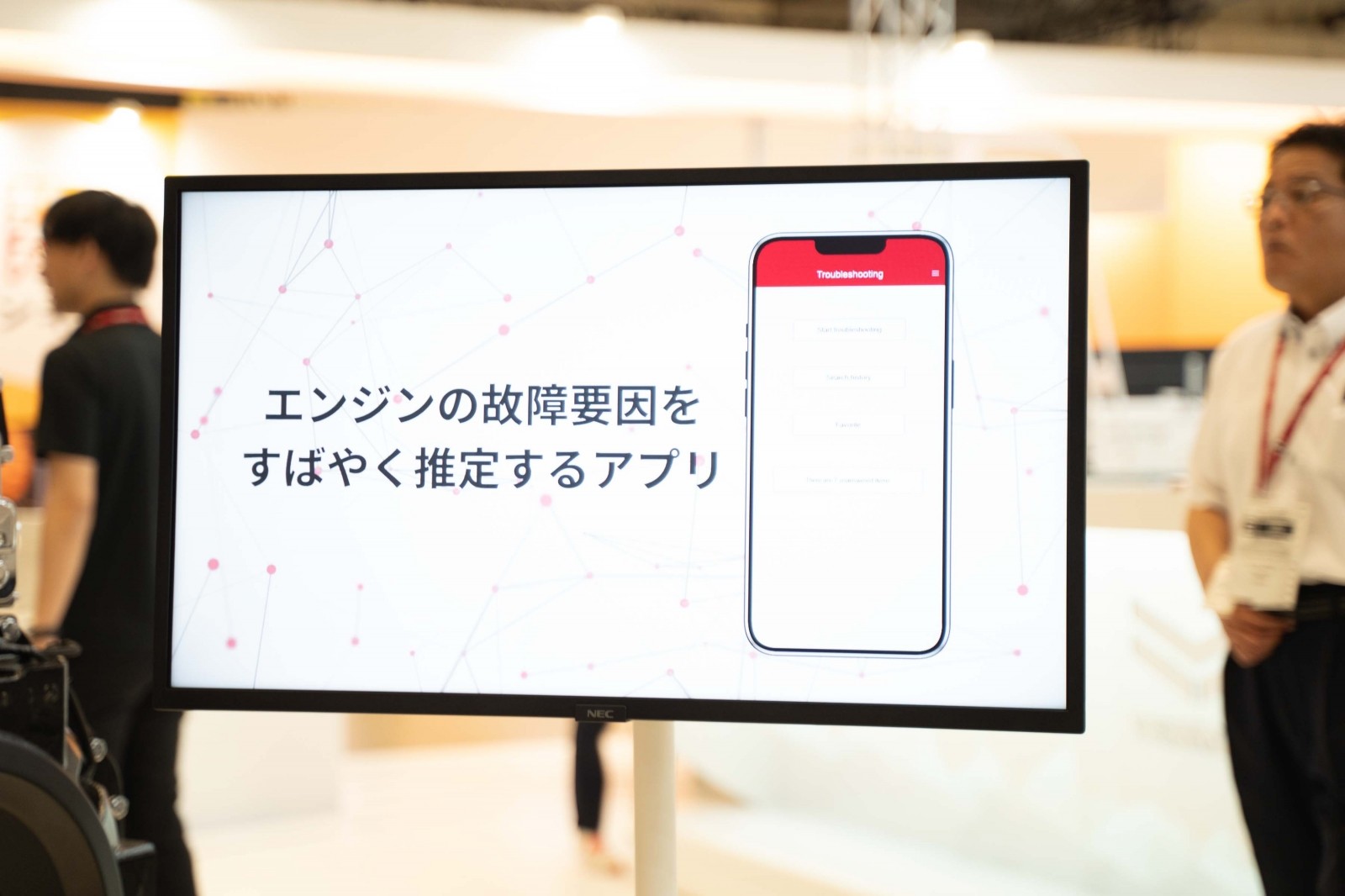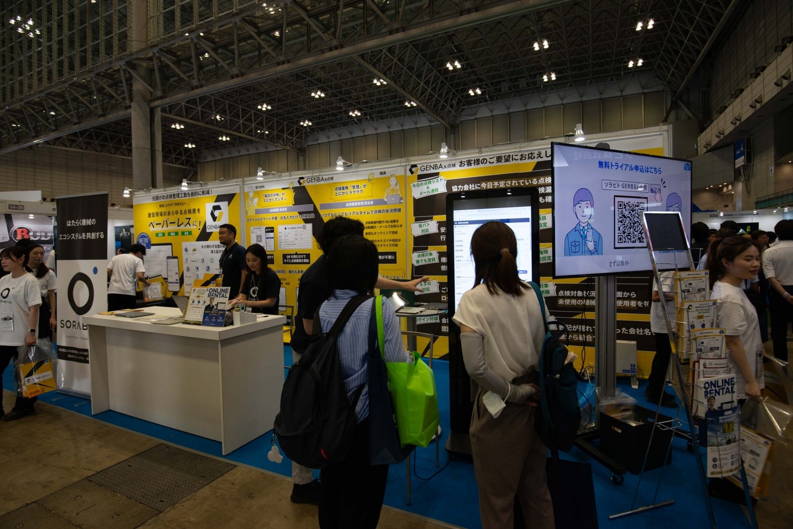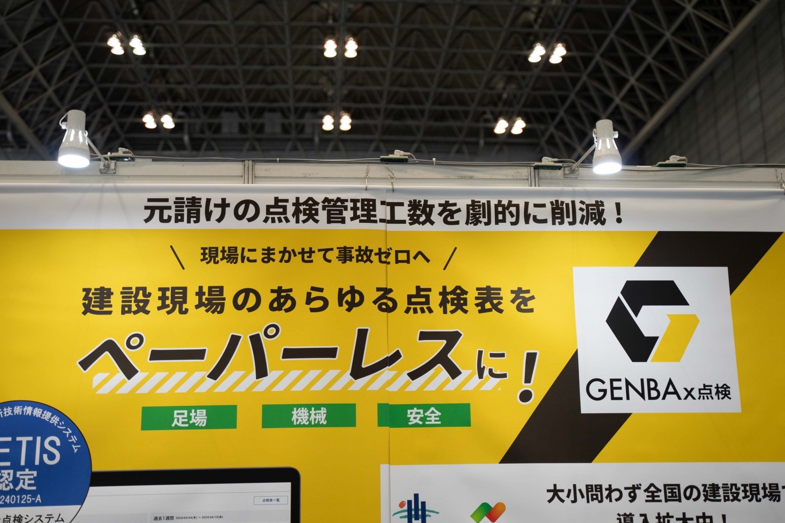 ソラビトは、建設現場の安全点検を効率化するNETIS認定ツール「GENBAx点検」を展示し、あらゆる点検表のペーパーレス化による業務効率化を提案した。