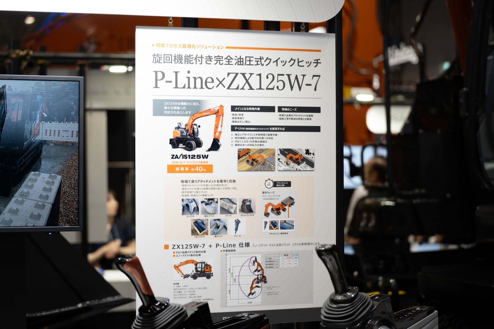日立建機は、施工現場の生産性と安全性を革新する2つのソリューション「P-Line(ピーライン)」を展示した。
