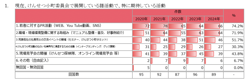 - 日建連活動への期待。若者向けPR活動74.2%、職場環境整備71.9%