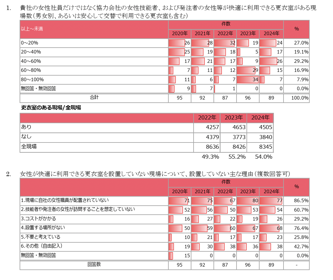 日本建設業連合会が2024年度の「建設業における女性の活躍推進に関するフォローアップアンケート調査報告書」を公表した。