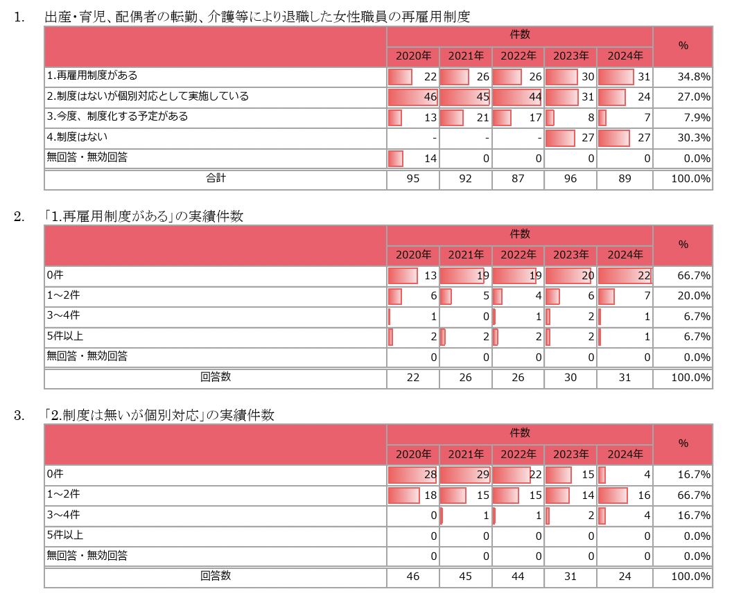 出産・育児、配偶者の転勤、介護等により退職した女性職員の再雇用制度を持つ企業は34.8%となっている。