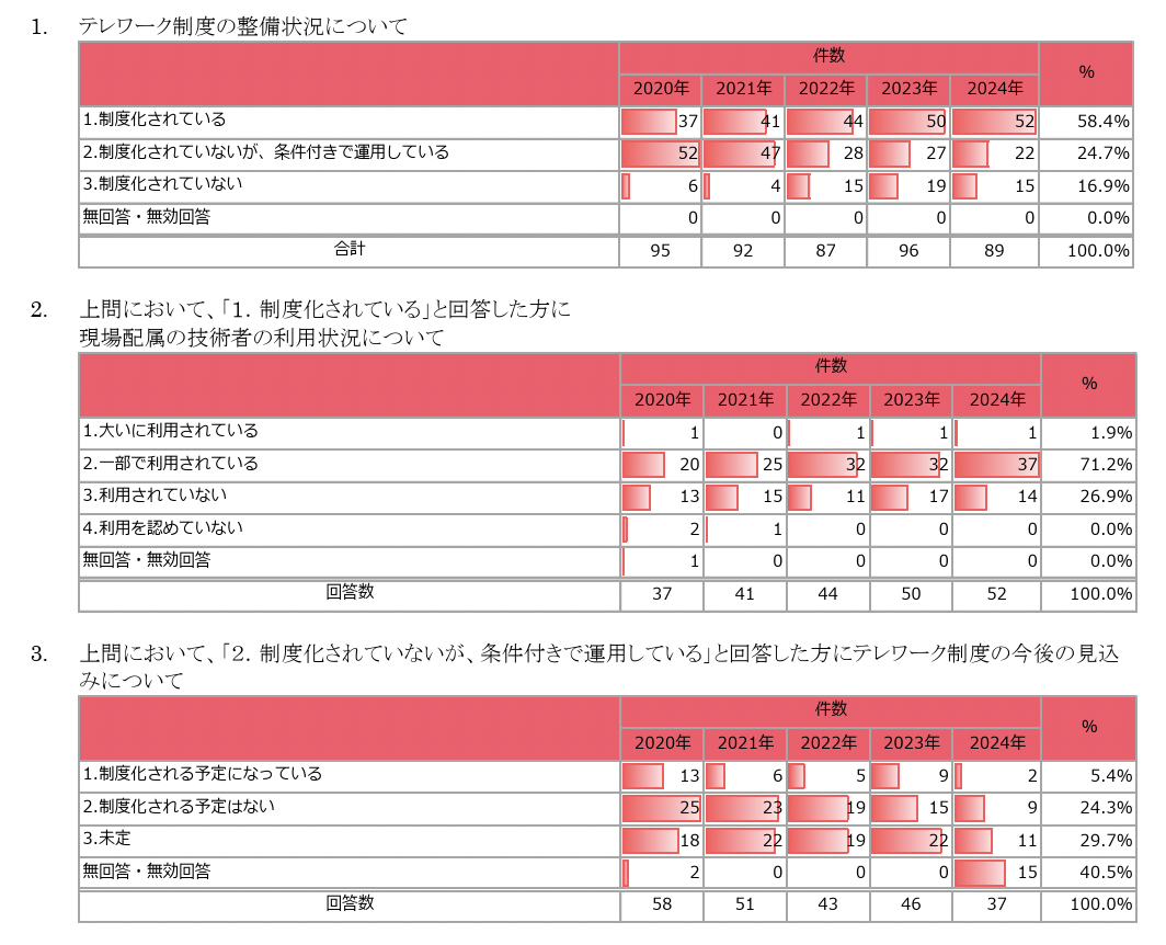 テレワーク制度については、58.4%の企業が制度化していると回答した。