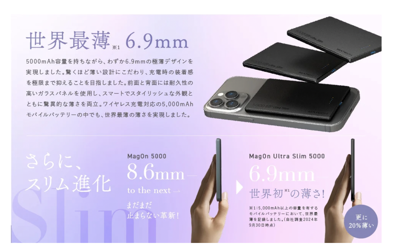 - MagGo On Ultra Slim 5,000mAh / MATEECH【持ち運び重視】