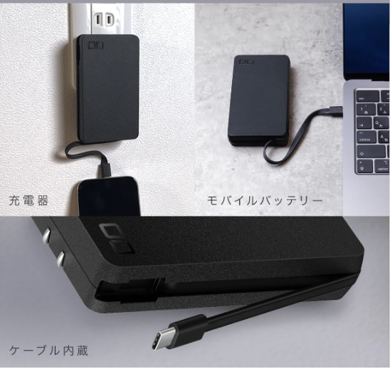 - ケーブル内蔵でケーブルを持ち運ぶ必要がない
