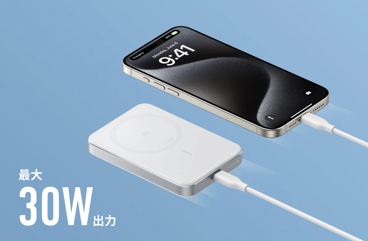 - 出力30WでiPhone、iPad、MacBook Airに対応