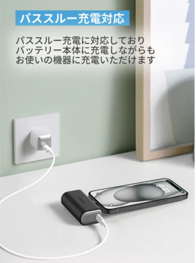 モバイルバッテリーを充電しながら、接続したデバイスも同時に充電できる機能だ。