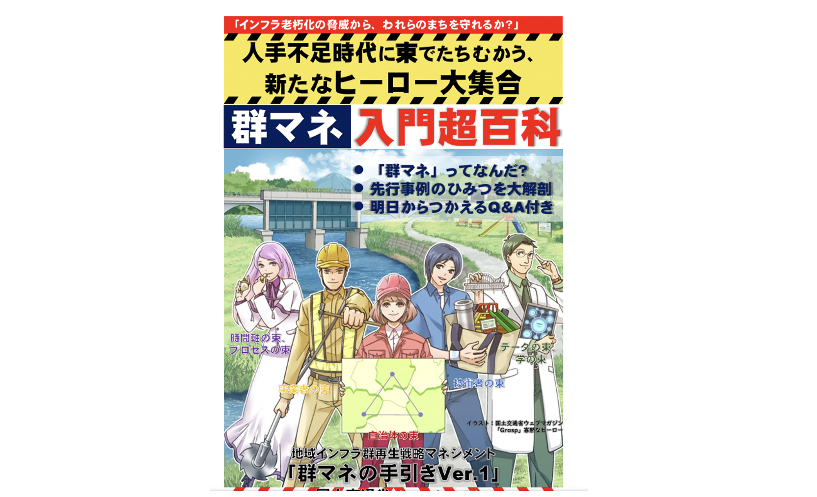 「インフラ老朽化の脅威から、われらのまちを守れるか?」手引きの副題に込められたこの問いかけに、群マネは「束で立ち向かえば、守れる」と明快に答えている。