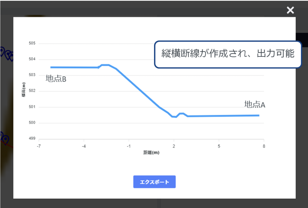 アプリにテンプレートが用意されているため、盛土や切土の形、下端や天端の長さを入れると断面が作成できる。2次元の平面図や断面図の直感的なやり方の感覚のまま、3次元設計データが作成できるのだ。