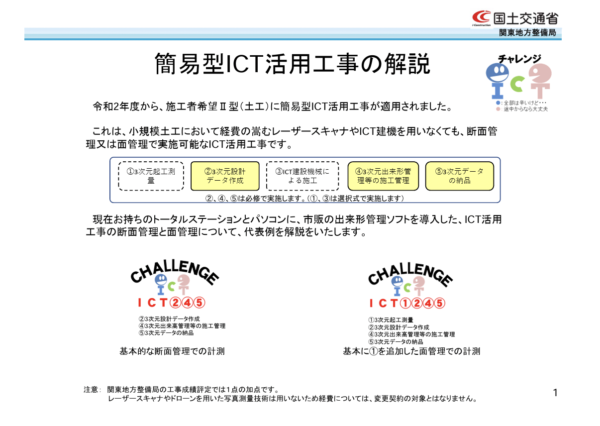 小さな河川工事や道路の補修工事など、数百万〜数千万円クラスの工事において、全てをICT化するのは受注する建設事業者にとって現実的ではなかった。