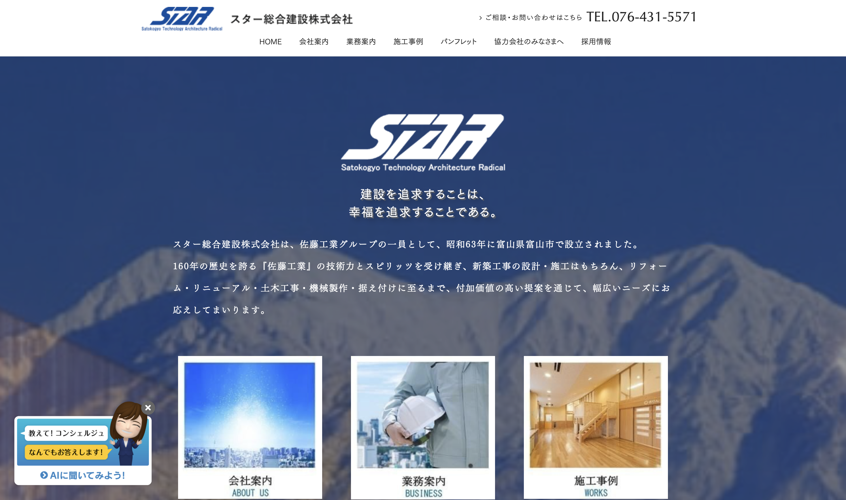 スター総合建設は、同じく富山県で建築事業に取り組む佐藤工業グループの一員として、1988年に設立された。