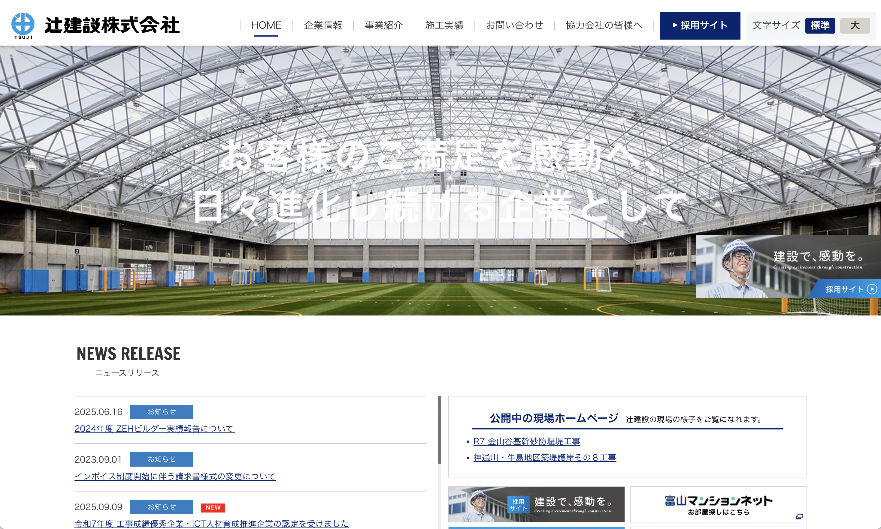 富山駅のほど近くに本社を置く辻建設は、1914年に創業、1950年に株式会社を設立した歴史を持つ。