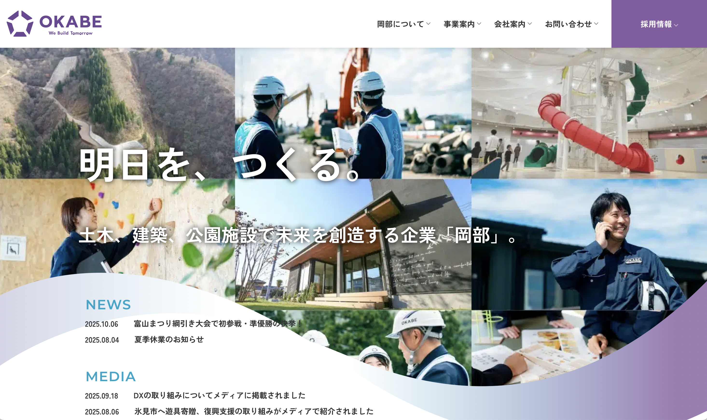 岡部は富山県を代表する総合建設会社のひとつだ。富山と東京を拠点に、土木工事、建築工事、遊具工事を主軸とした事業を展開している。