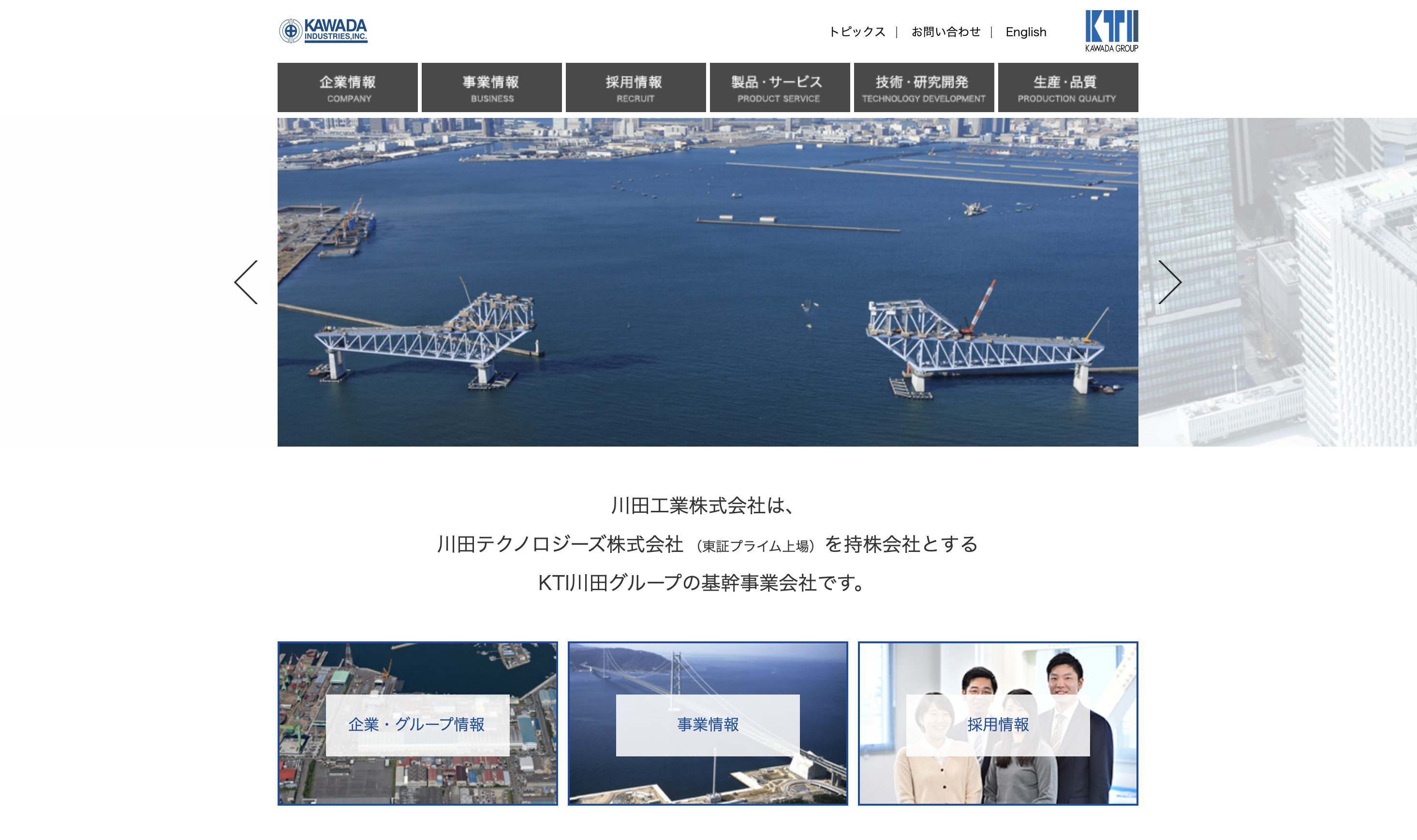 川田工業は、橋梁、鉄構、建築の各事業を展開している。鋼製橋梁では、吊橋として世界一の支間長を誇る明石海峡大橋、台湾新幹線C250工区、東京ゲートブリッジなど数多くのビッグプロジェクトに参画している。