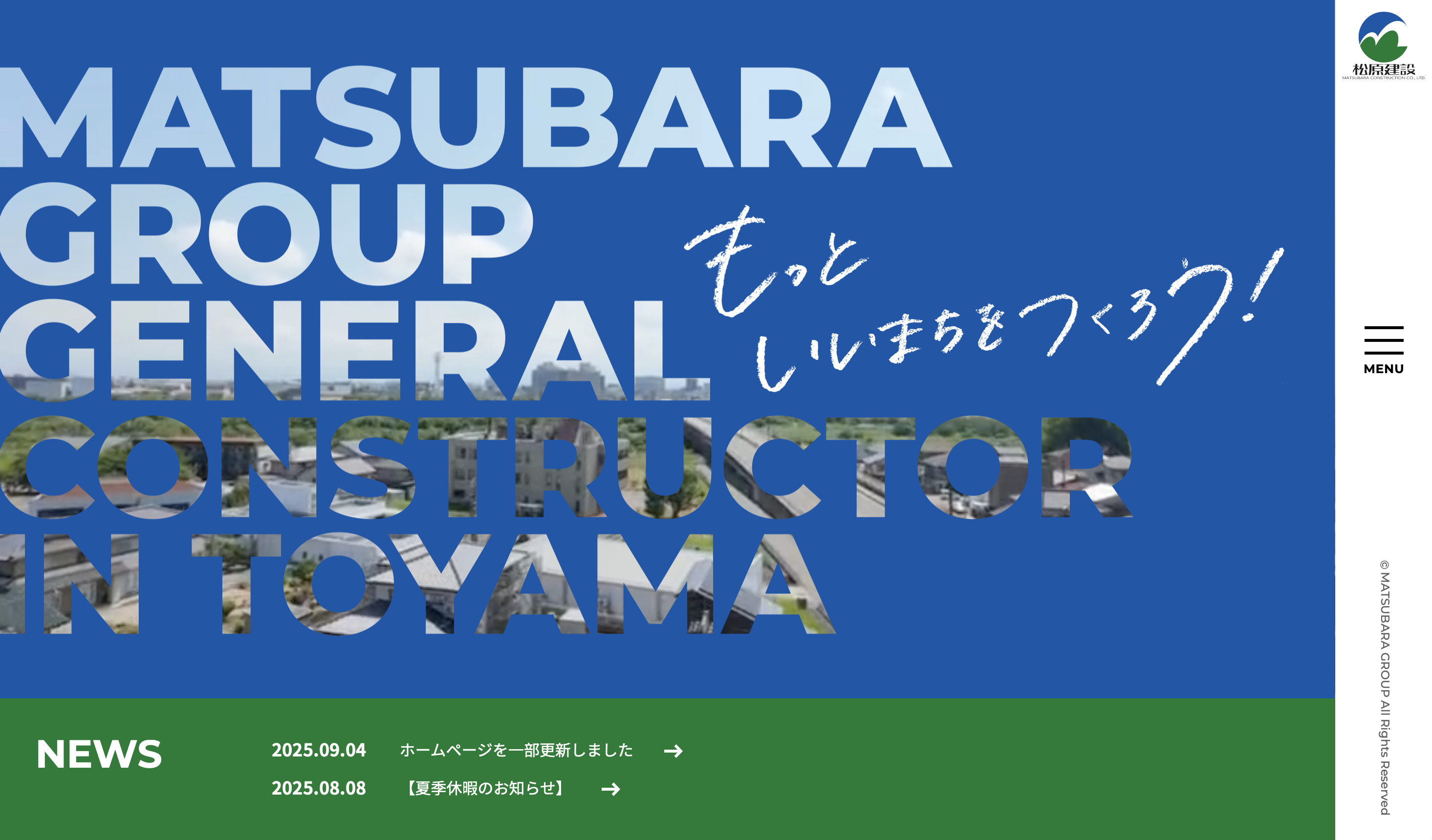 企画、測量、設計、監理、コンサルティング業務などを一貫して請け負う建設工事を事業の柱としており、近年では、静岡県富士山世界遺産センター、シンガポール建築建設庁から表彰を受けたシンガポール地下鉄ベンクーレン駅、ぴあアリーナMM、富山県内ではオリバースポーツフィールド射水などの工事実績がある。