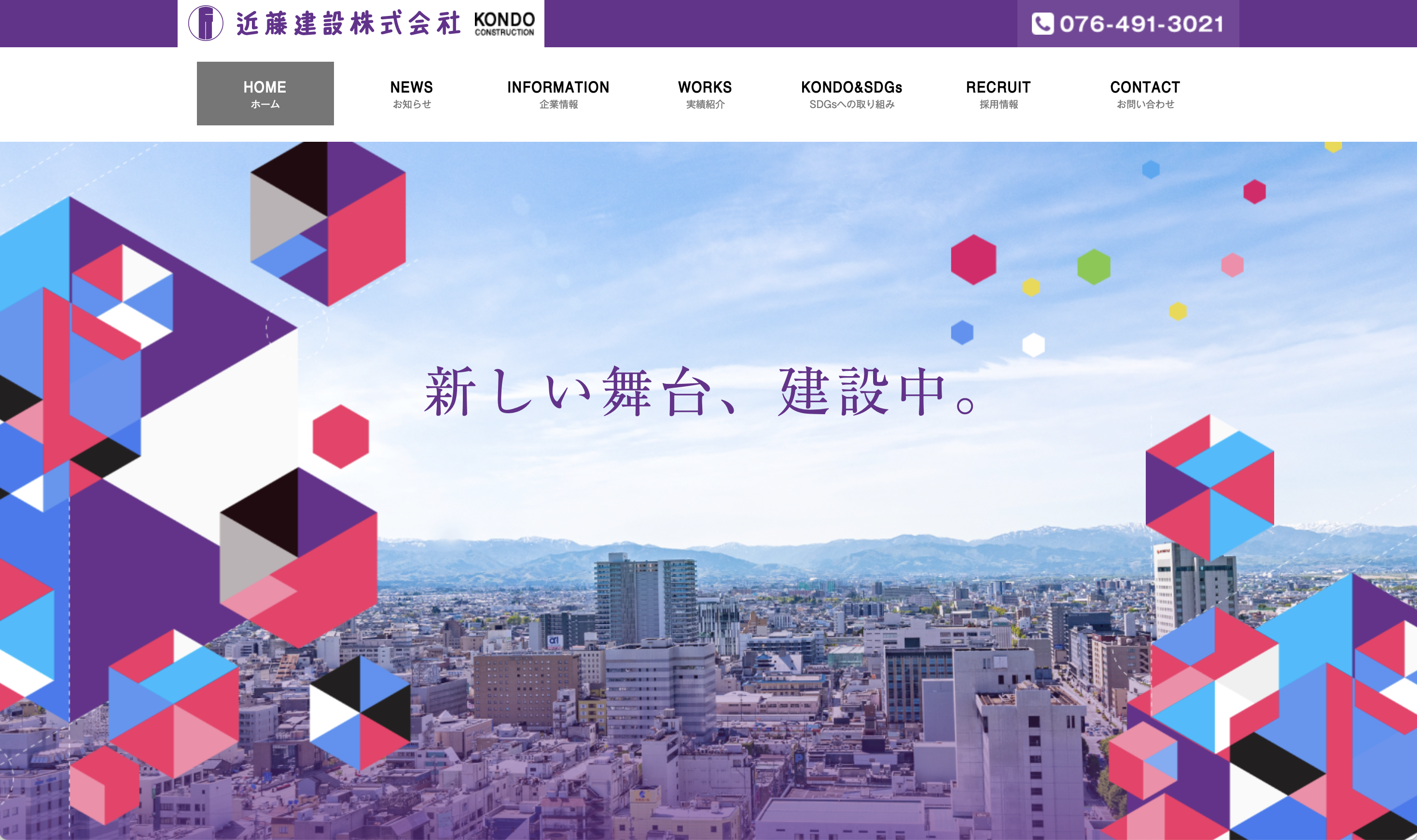 「新しい舞台、建設中。」というユニークな経営理念を掲げる近藤建設は、1938年に創業、1949年に会社設立をした富山市の企業だ。