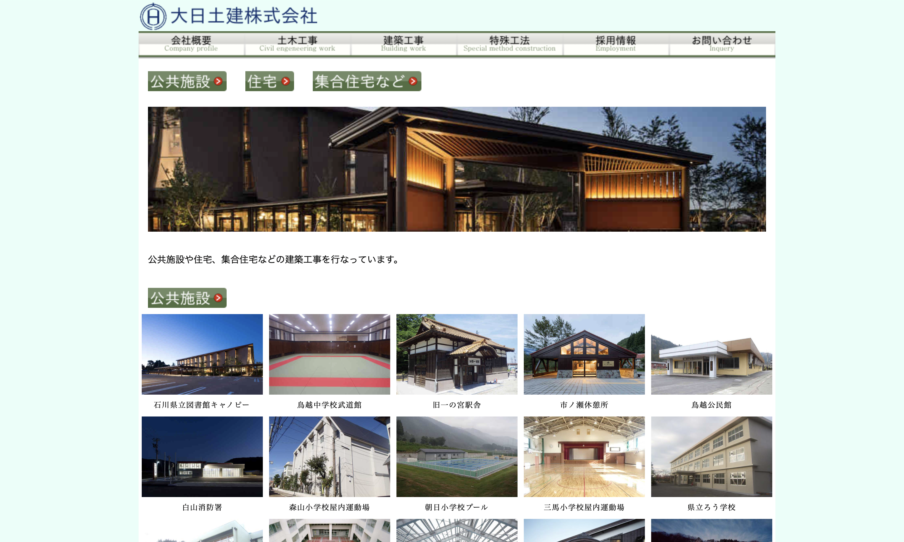 (画像元:大日土建WEBサイトより引用)施工実績として、石川県立中央病院外構、金沢市を象徴する河川である犀川の河道堀削などがある。