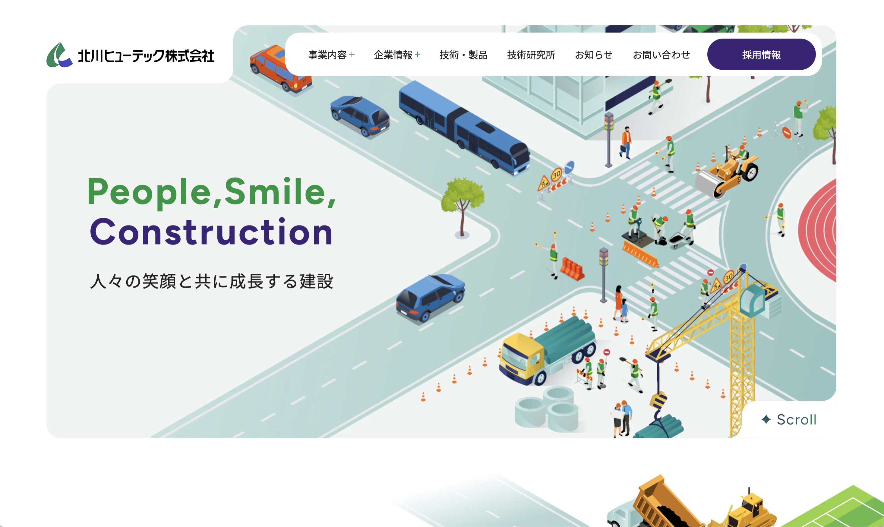 主な事業展開として、建設事業、リニューアル事業、総合エネルギー事業を掲げ、伝統的な木造・文化財建築から、インフラ整備、都市開発まで、幅広く手がけている。「ベル・ミクロ工法」など独自技術の開発で、安全・安心な構造物づくりにも注力している。