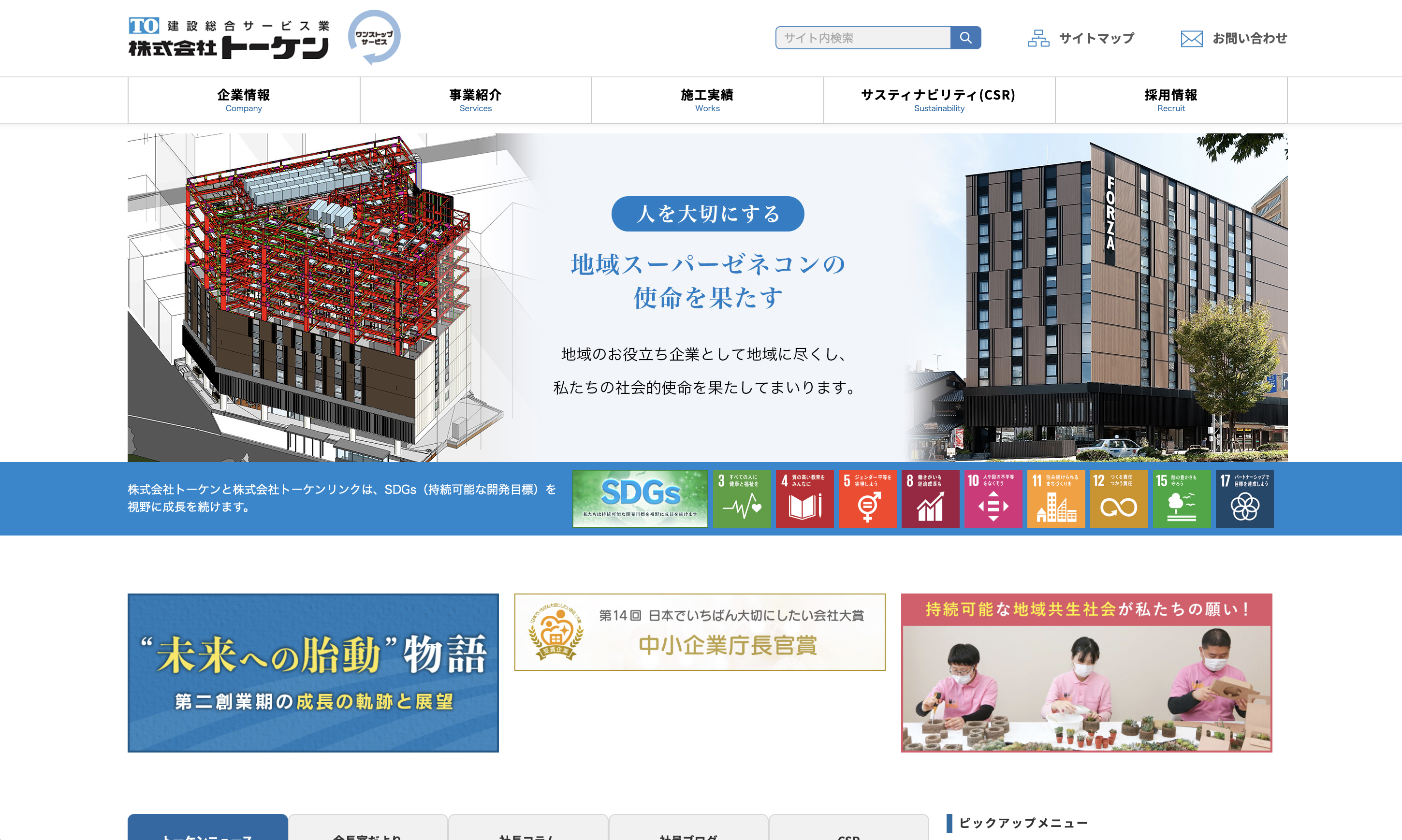 (画像元:トーケンWEBサイトより引用)工場・倉庫、社屋、公共・教育文化施設、医療・福祉施設、アパートマンション、商業施設、PFI事業などを幅広く手がけており、石川県かほく市にある日本最大級の産業観光施設KAJI FACTORY PARKや、石川県立中央病院、北陸新幹線小松駅の高架下観光交流センターなどの施工実績がある。