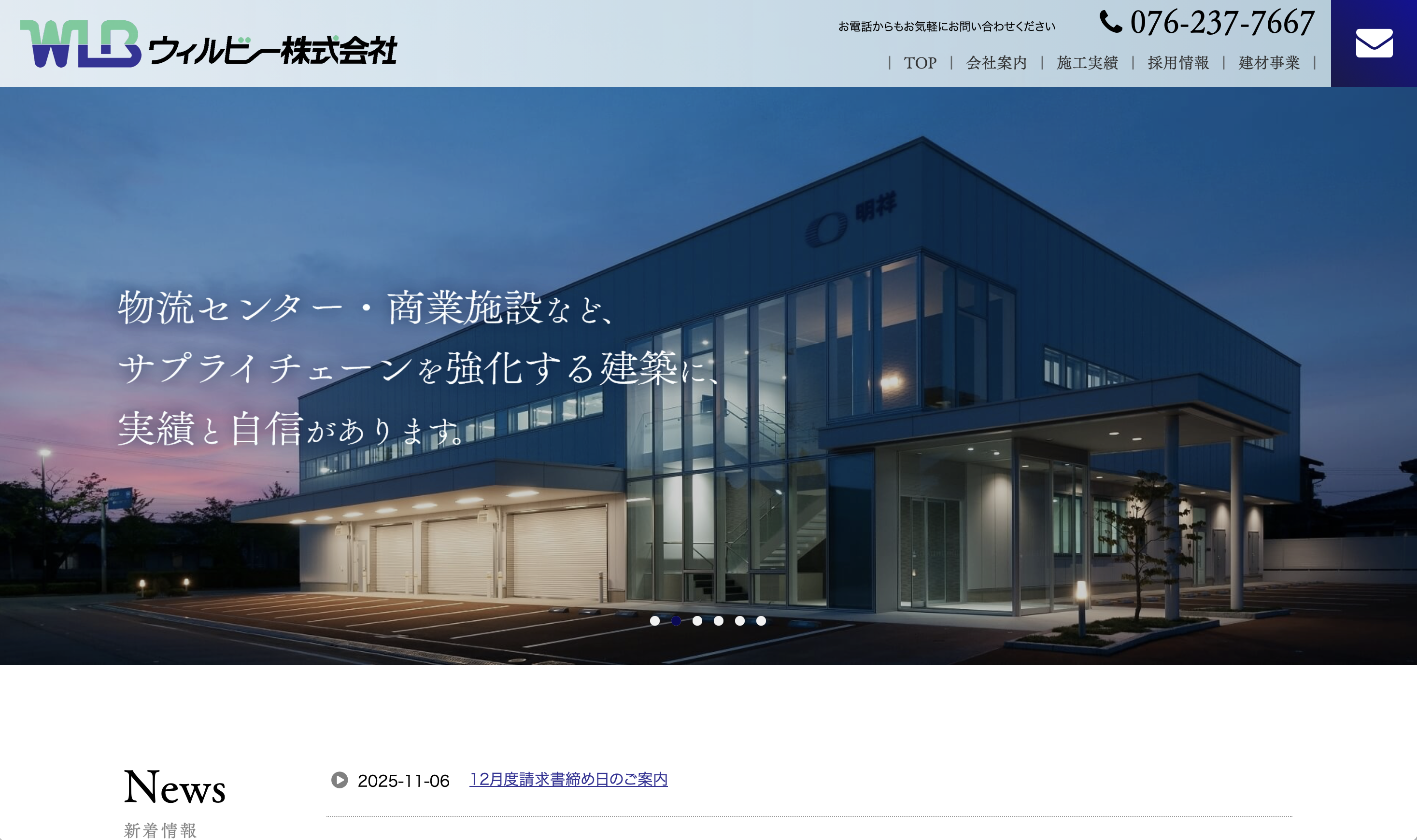 ウィルビーは、1977年に石川県金沢市で創立された総合建設・建材企業だ。建築事業本部では、物流センター・倉庫・工場・商業施設などサプライチェーンを支える大規模構築物を設計から施工、メンテナンスまで一貫して手がけており、日鉄物産システム建築や横河システム建築の代理店という強みも持つ。