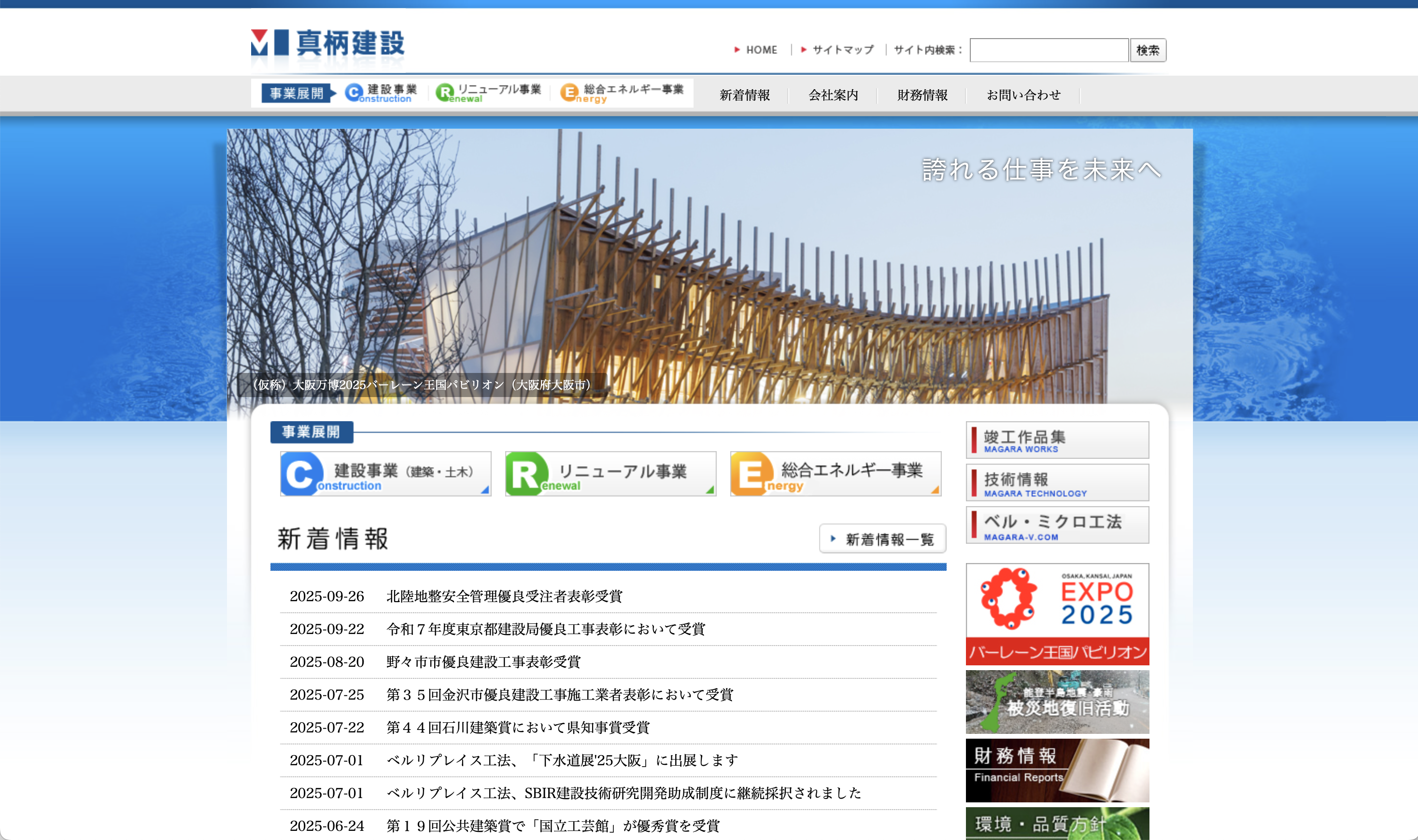 直近では、大阪万博2025バーレーン王国パビリオン、東京都の善福寺川整備工事などの実績があり、北陸三県のみならず、全国政令都市での多数の施工実績を誇る。
