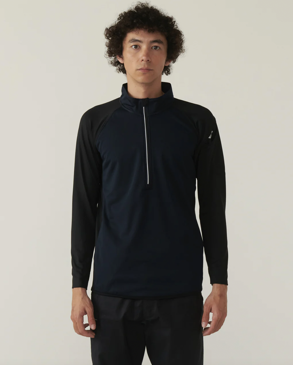(画像元:ラミネートロングスリーブジップシャツ製品サイトより引用)この「前は防風、後ろは通気」というハイブリッド構造により、「風は防ぐが、湿気は逃がす」という理想的な衣服内環境を作り出す。