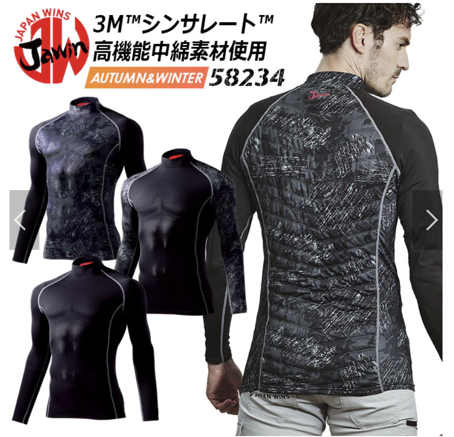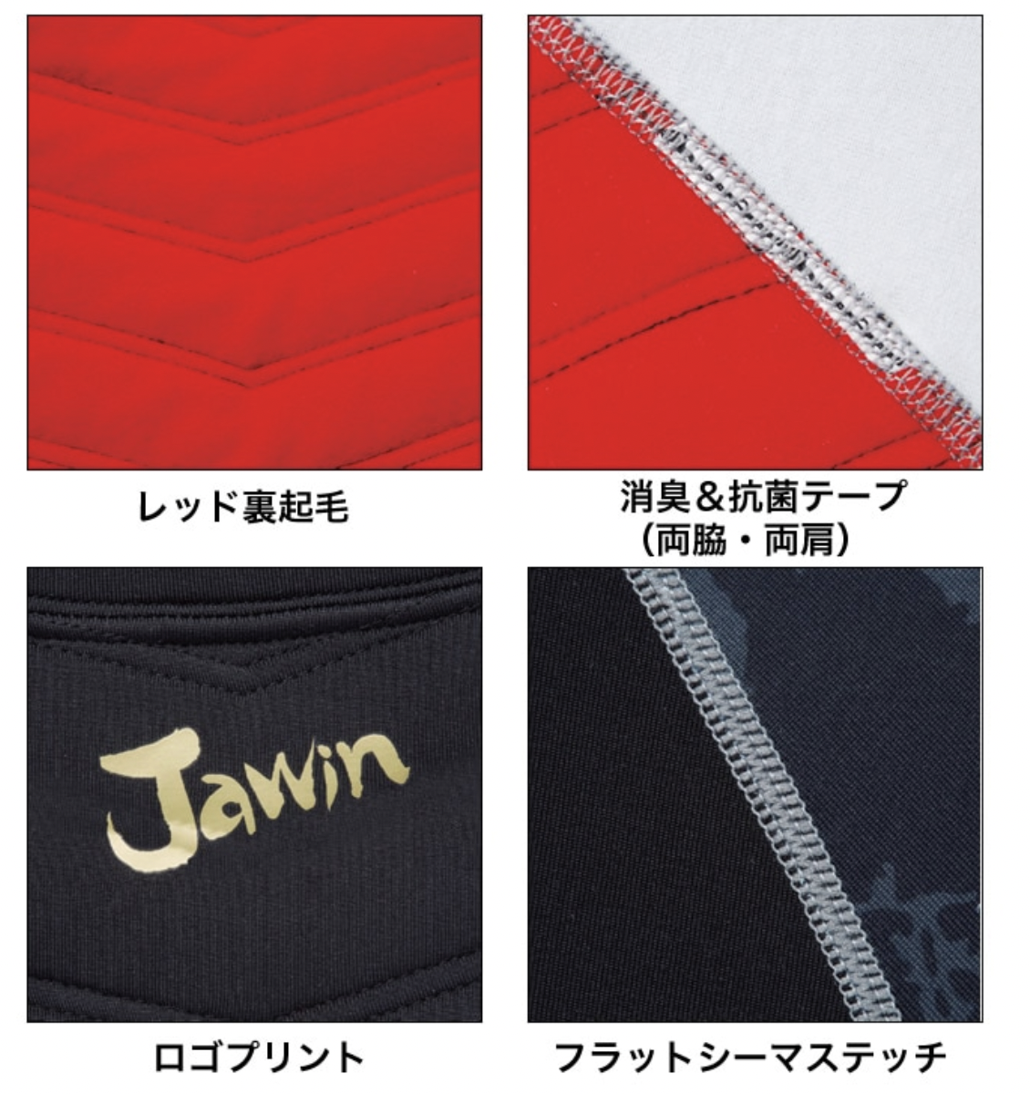 (画像元:だるま商店 ジャウィン 冬用インナーウェア商品サイトより引用)吸汗速乾加工、消臭・抗菌テープといった基本機能も高水準で網羅。「魅せるインナー」として、仕事へのモチベーションを高めたい方、己を鼓舞したい職人にこそ選んでほしい。