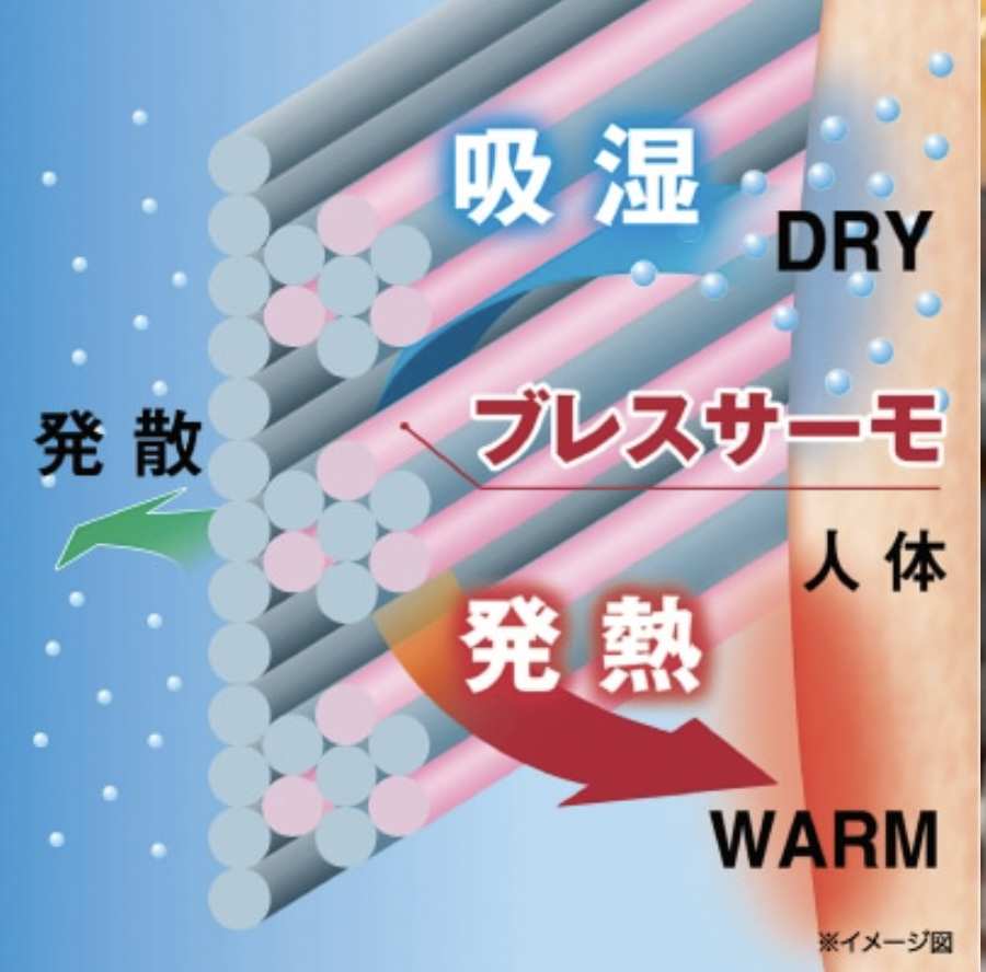 日本のスポーツメーカー・ミズノが誇る吸湿発熱素材「ブレスサーモ」。