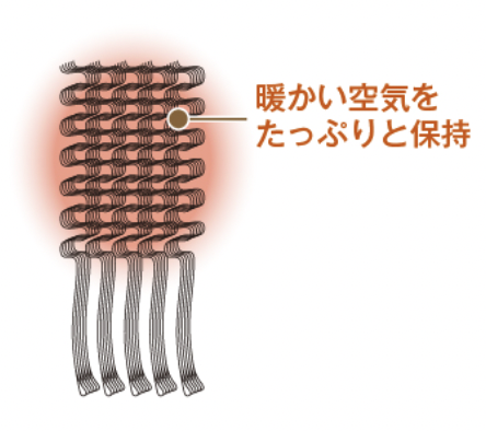 この空気の層が断熱材の役割を果たし、外気の冷たさを遮断しつつ、体温を逃がさないように保温するのだ。