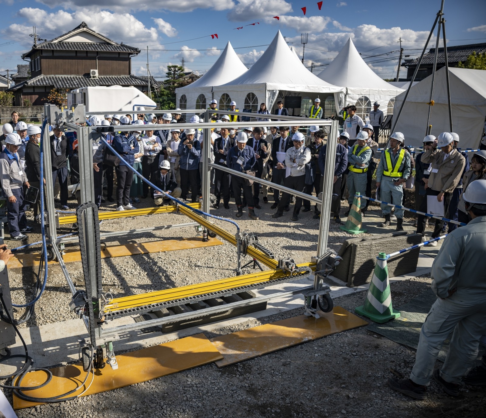 2025年11月6日・7日の両日、京都市西京区の「3・3・5中山石見線道路改築工事」現場にて、建設用3Dプリンターの活用現場見学会が開催された。