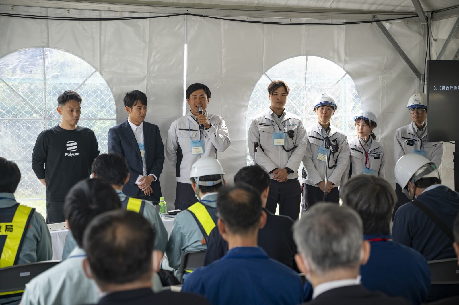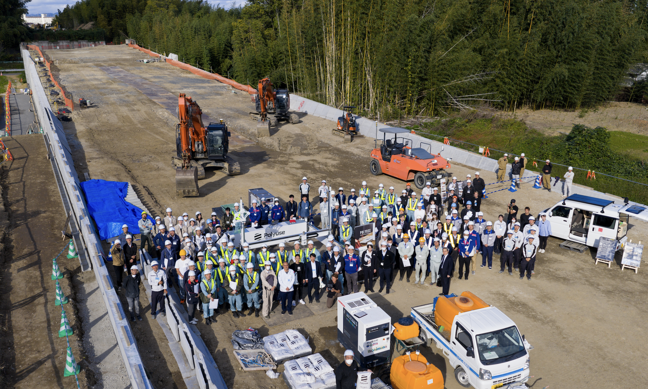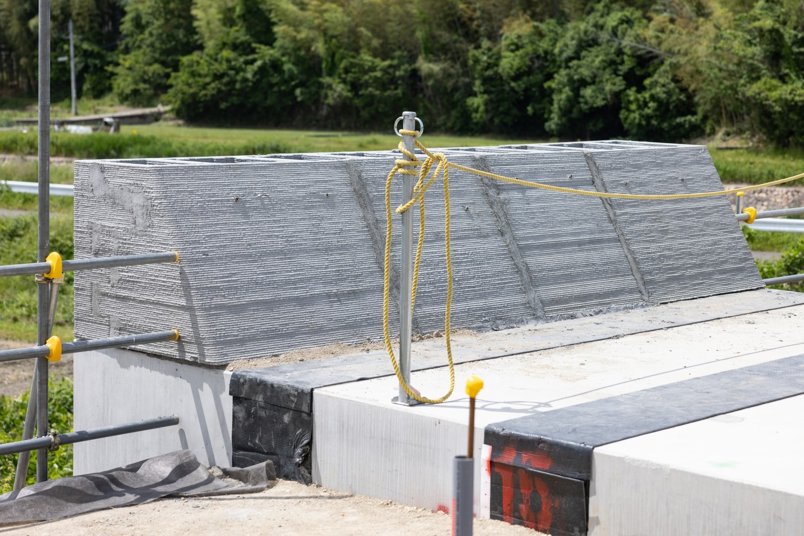 施工を担当する吉村建設工業株式会社と、国内建設用3Dプリンターを開発・提供する株式会社Polyuseが連携し、実際の公共工事現場で「型枠レス」による構造物構築を実践。