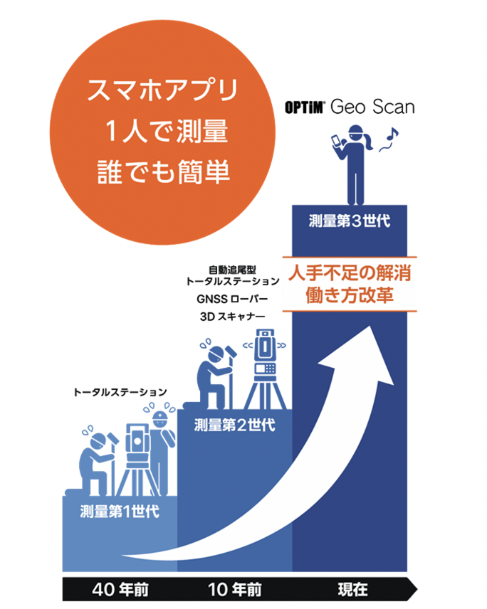それが、iPhoneのLiDARセンサを活用して測量ができる1人測量アプリ「OPTiM Geo Scan」だ。