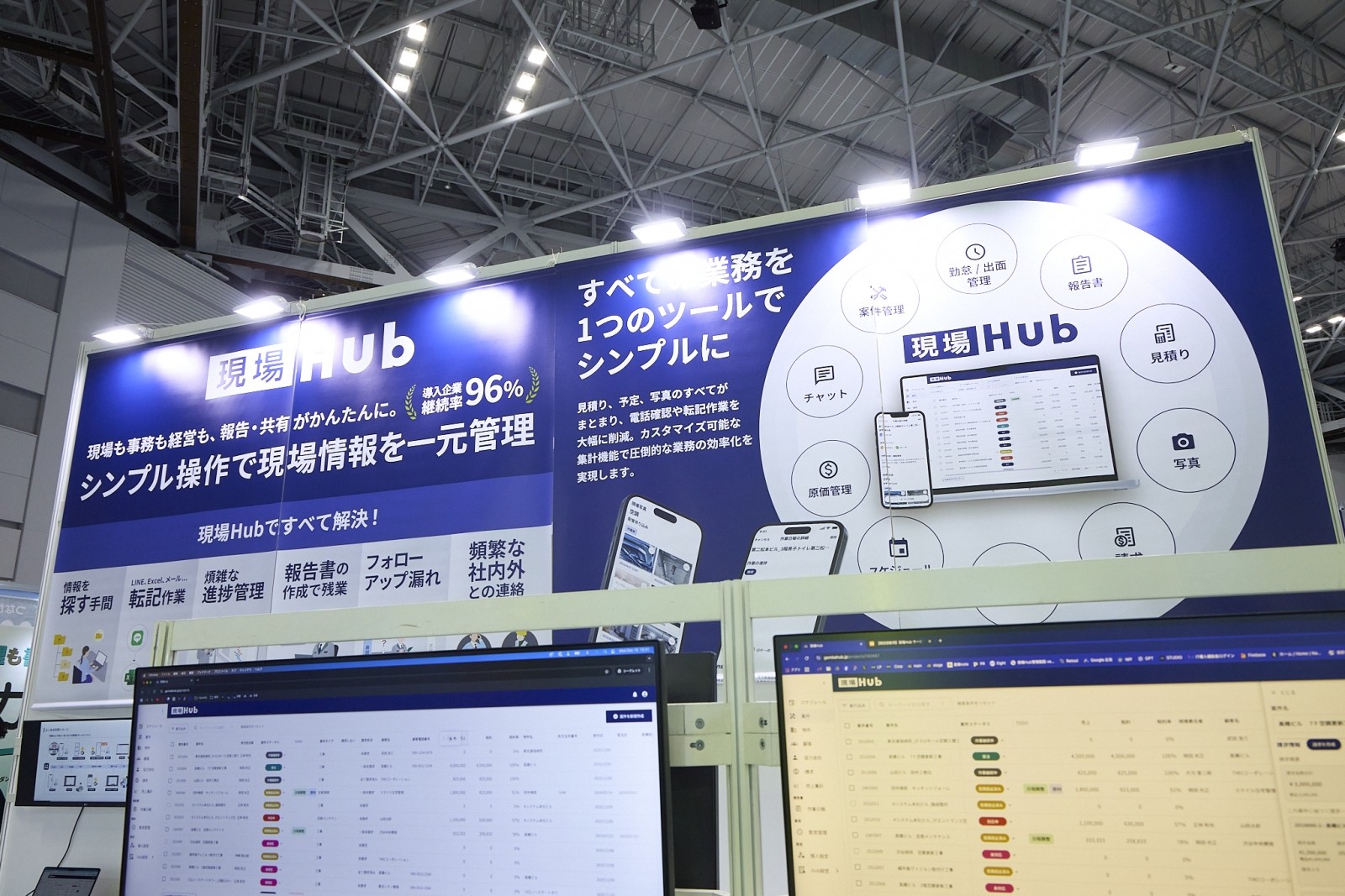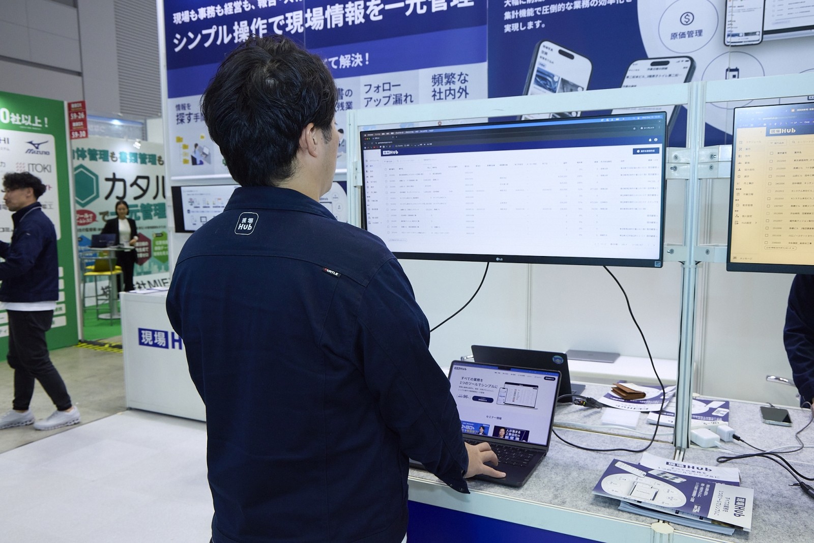 これまで夜な夜なExcelで行っていた帳票作成業務がほぼゼロになるインパクトは大きく、多くの現場所長が足を止めていた。