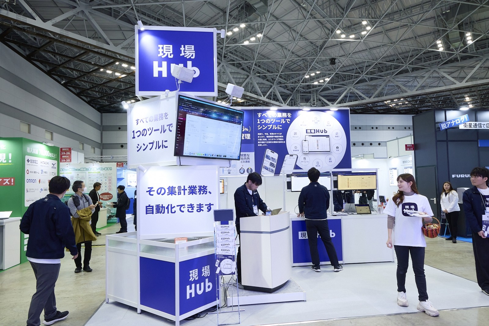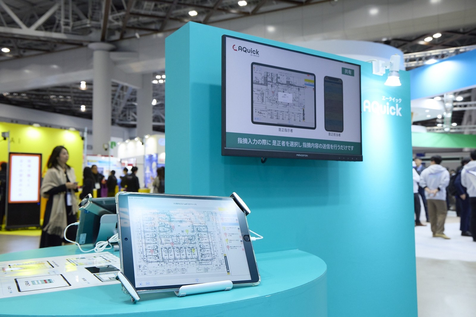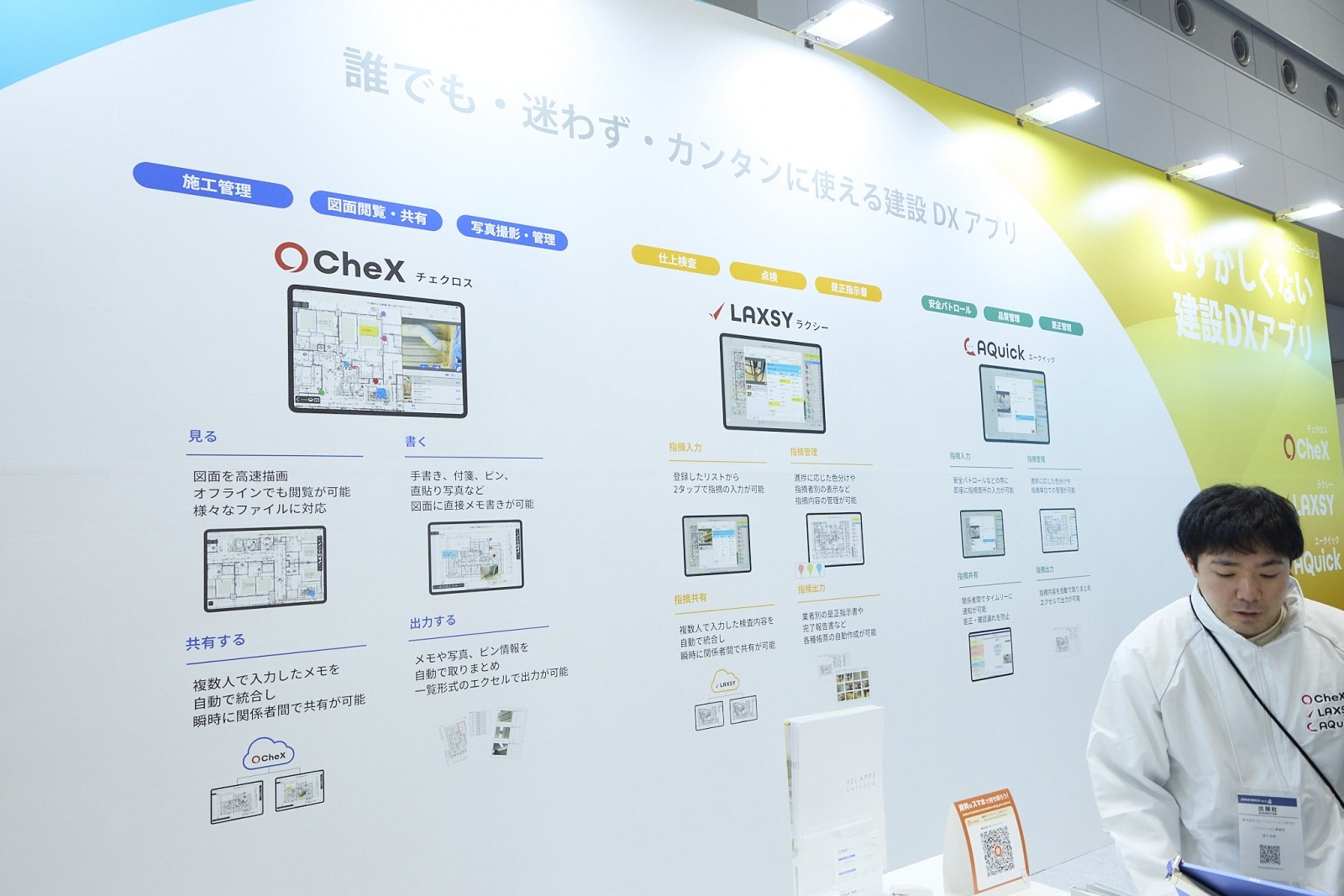 同社のブースでは、施工フェーズ、検査フェーズ、そして安全管理という現場の主要な3つのシーンをカバーするアプリ群が紹介され、その導入実績と使いやすさに多くの来場者が頷く姿が見られた。