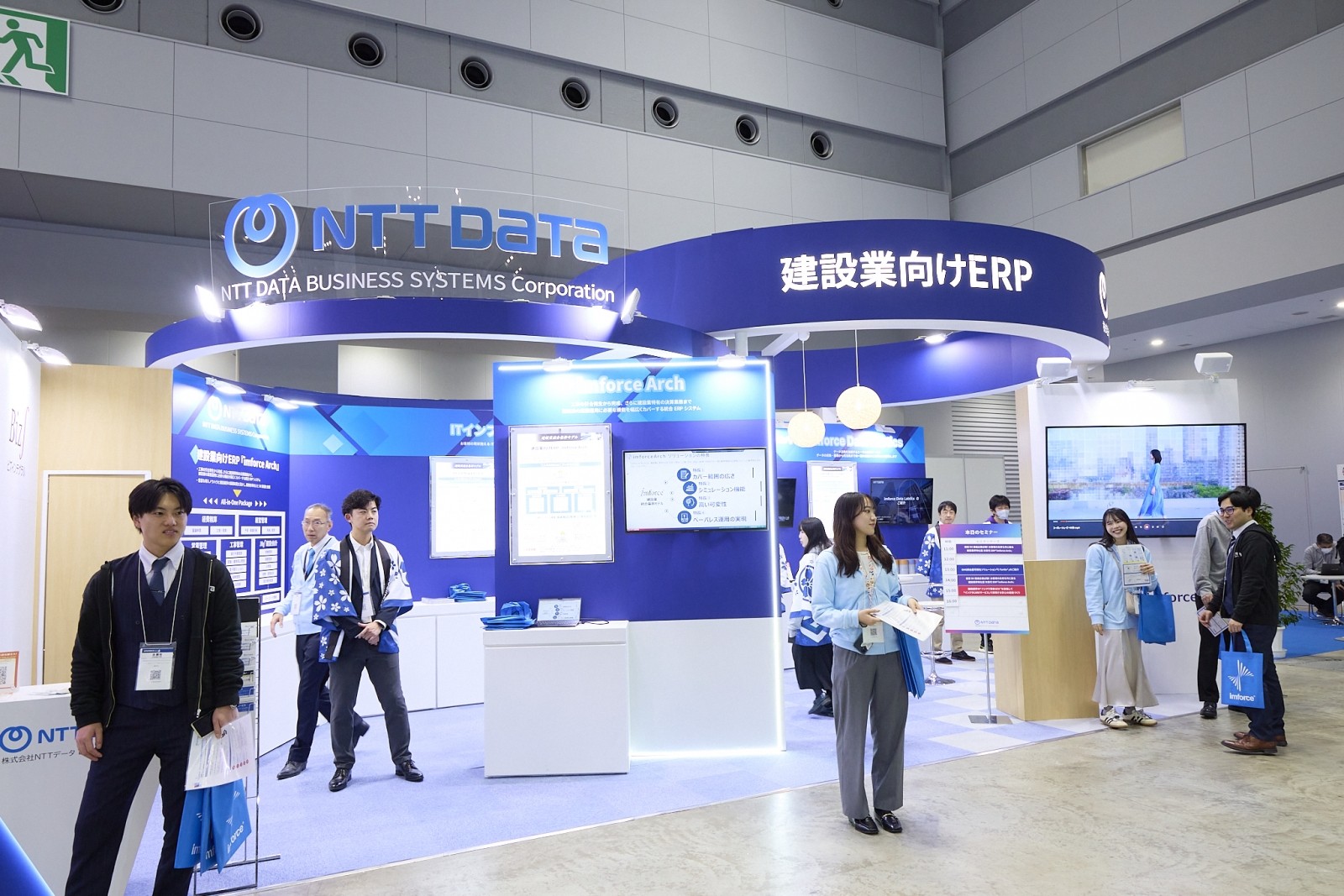 NTTデータビジネスシステムズのブースでは、建設の未来を加速させる統合ERPソリューション「imforce Arch」が大きく展開された。