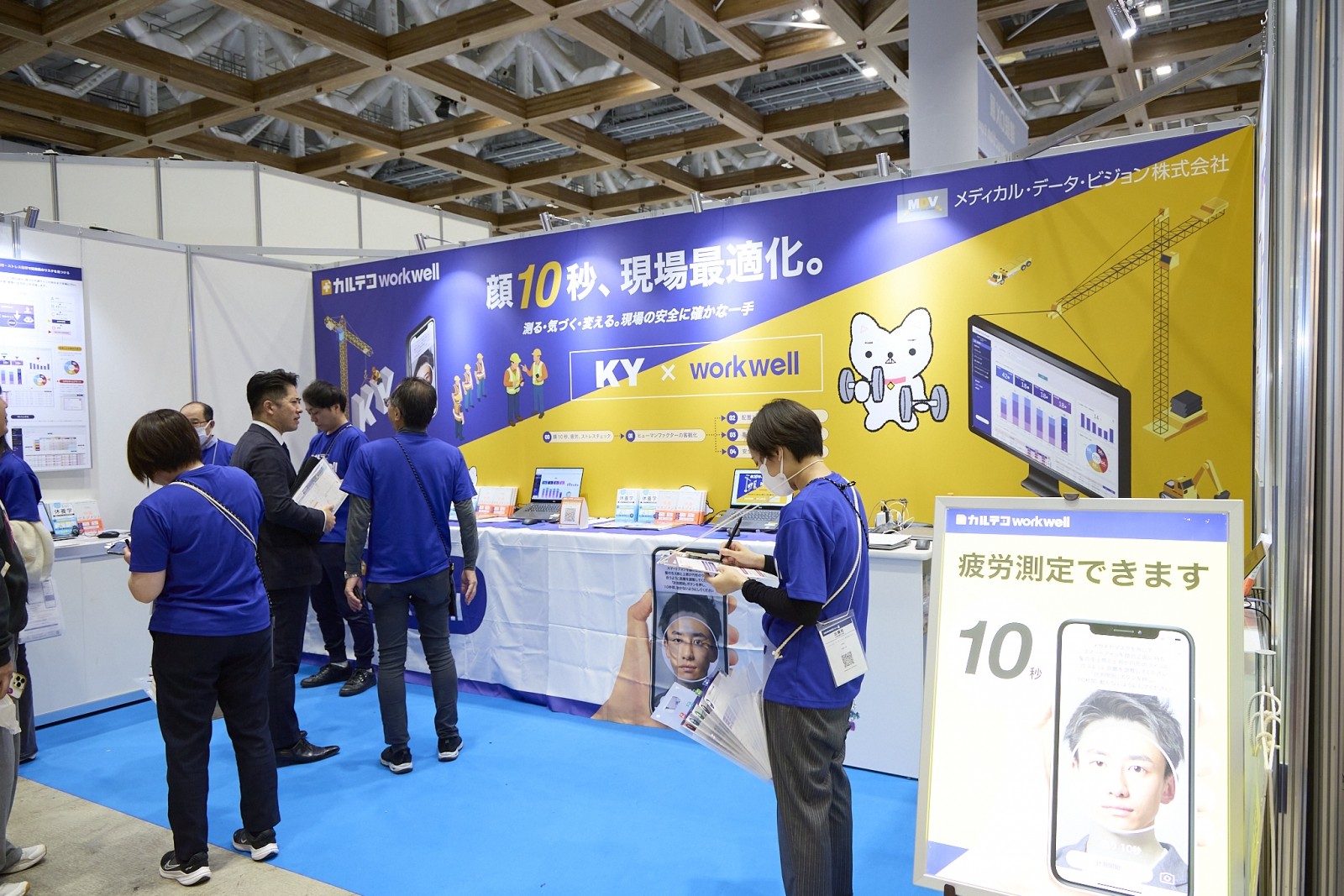 医療ビッグデータ大手のメディカル・データ・ビジョン株式会社は、この見えにくいリスクを「顔撮影」だけで可視化する画期的なソリューション「カルテコworkwell」を展示した。