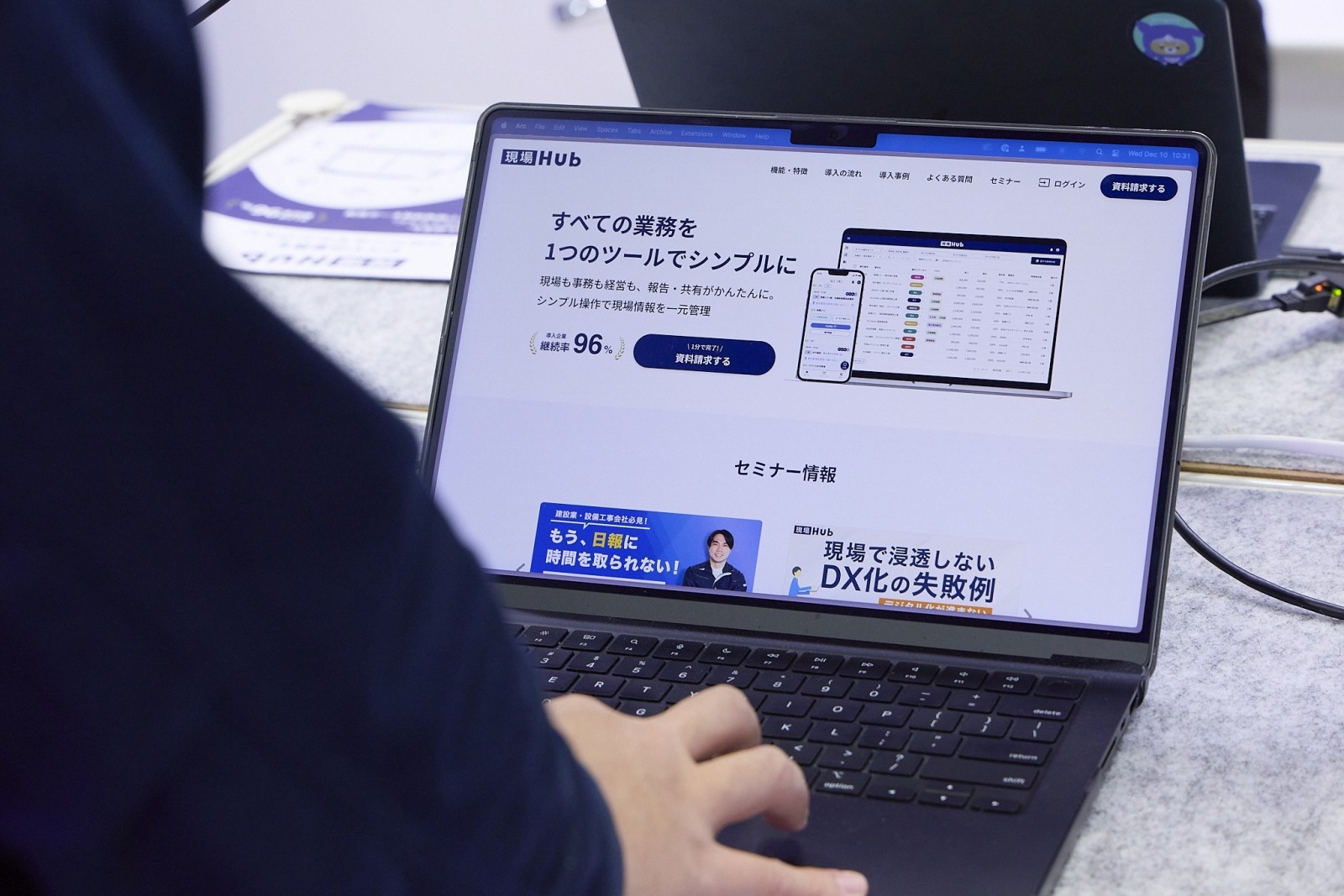 協力会社の職人が多い現場でも、事前のユーザー登録などの手間をかけずに即導入できる「ハードルの低さ」が、来場した現場所長の関心を強く引いていた。