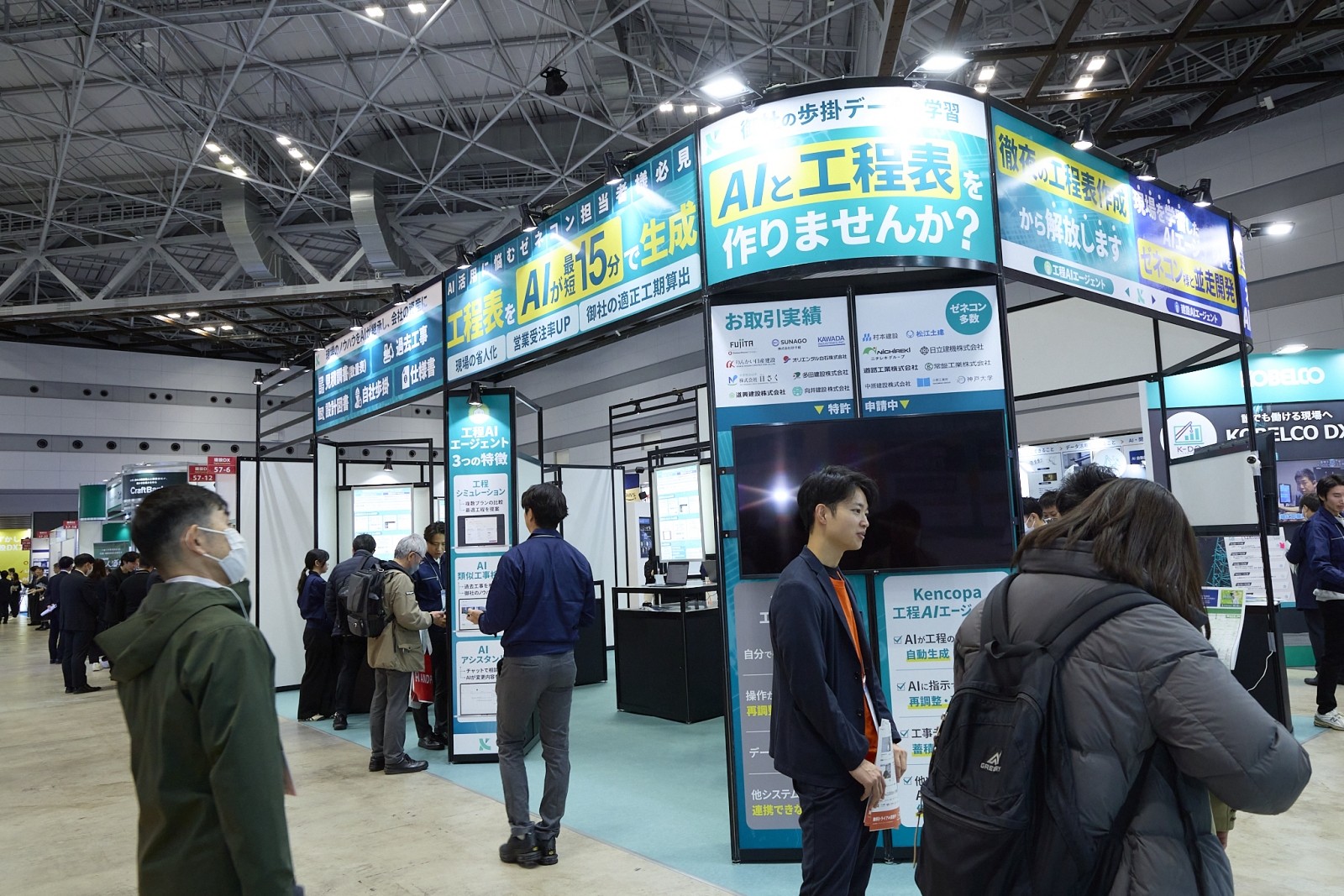 スタートアップ企業KENCOPAのブースでは、2025年12月にβ版の提供が開始されたばかりの「Kencopa工程AIエージェント」が反響を呼んでいた。