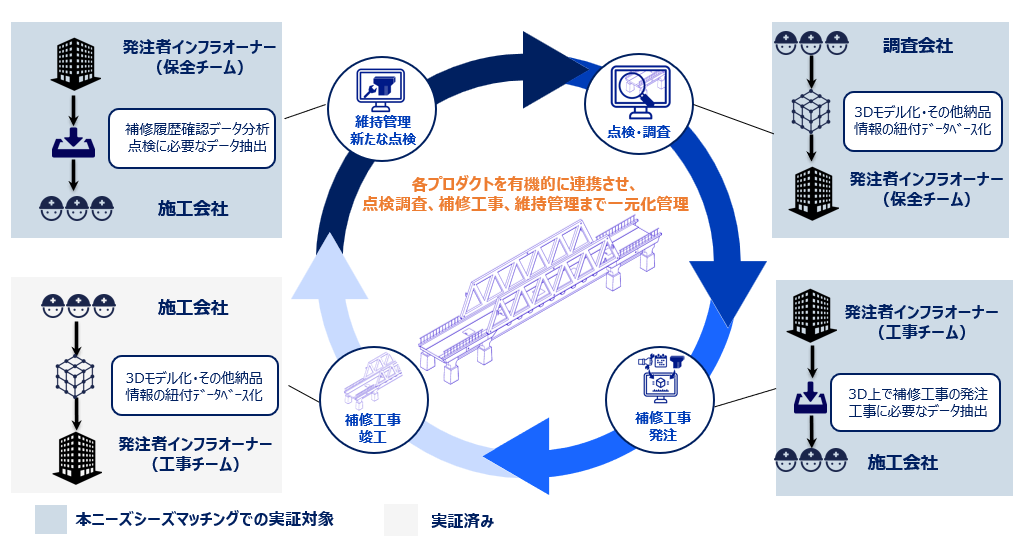 田尻:インフラの修繕工事は、プロジェクトベースで進められるのが常ですが、国の方針をしっかりと把握して、データの維持・管理や共有がスムーズになる工夫も引き続き検討していきます。