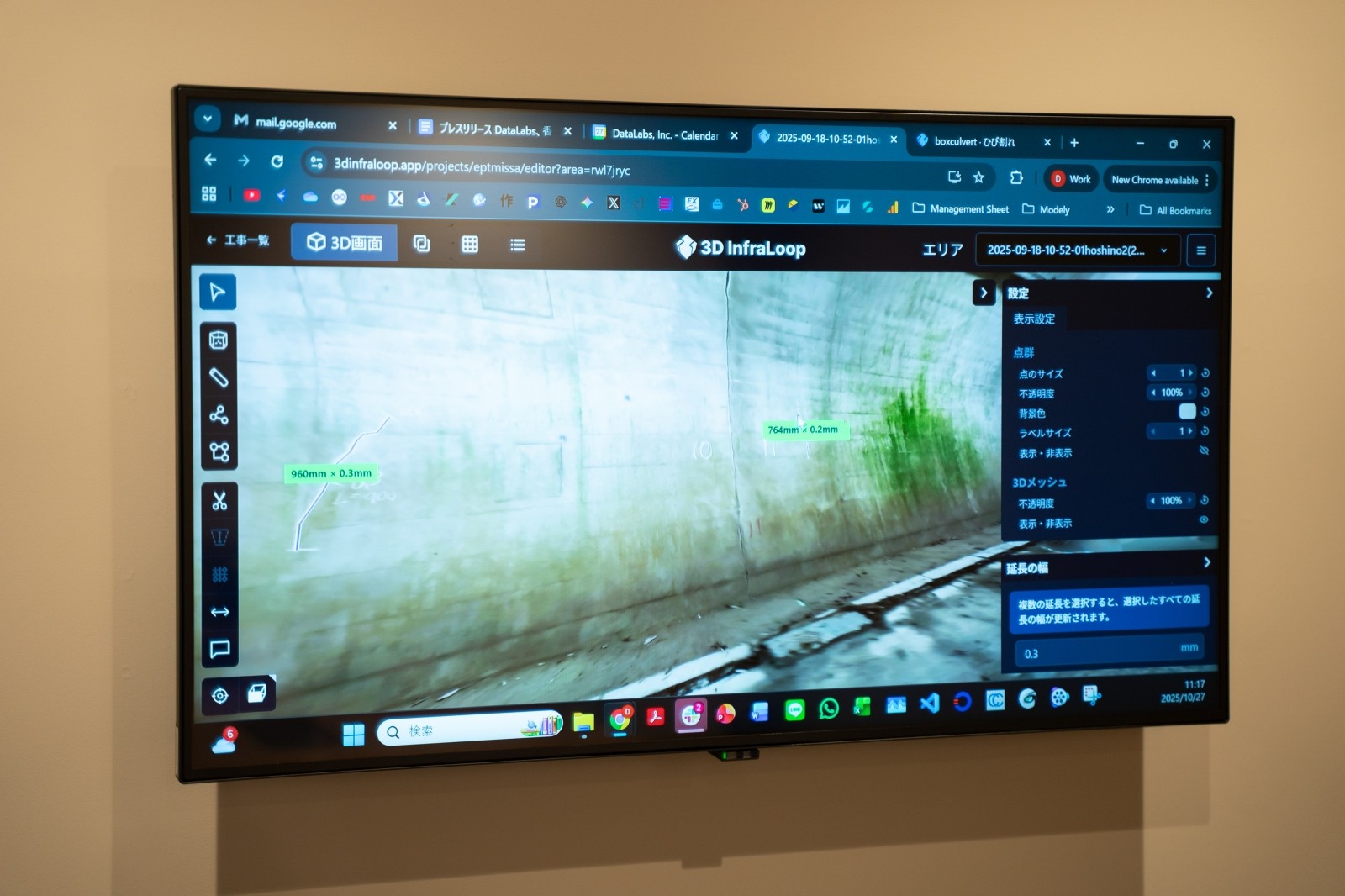 続く、2023年には3Dインフラ補修工検査システム「Hatsuly(ハツリー)」をリリースし、いずれも国土交通省のNETIS(新技術情報提供システム)に登録されている。