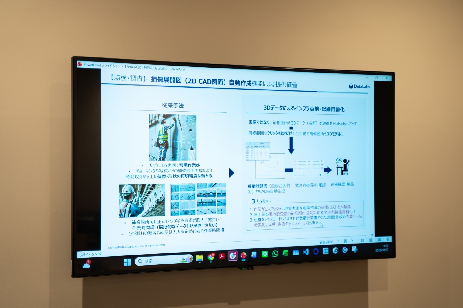 田尻:私たちは補修設計・点検調査に役立つ、3Dインフラ点検システム「Markly」と3D配筋検査システム「Modely」、そして補修工・維持管理に使える3Dインフラ補修システム「Hatsuly」を手掛けていますが、インフラ分野で存在感を大きくしていくためには、新しい製品を開発することだけにとらわれていては、不十分だと感じています。